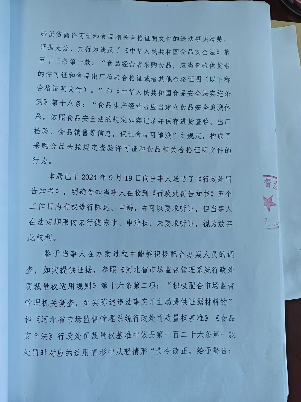 涞市监〔2024〕白石山15号涞源县羽佳食品超市 进货未按规定查验供货者许可证和合格证明文件案