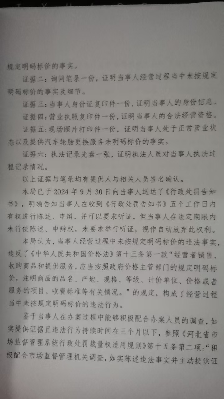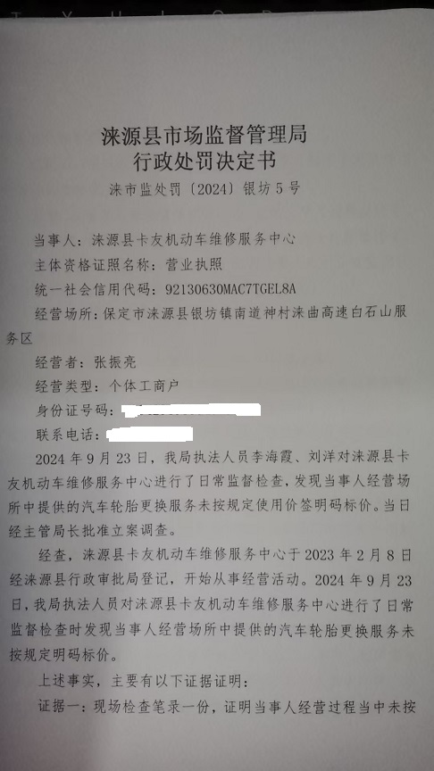 涞市监处罚〔2024〕银坊5号涞源县卡友机动车维修服务中心涉嫌未按规定明码标价案
