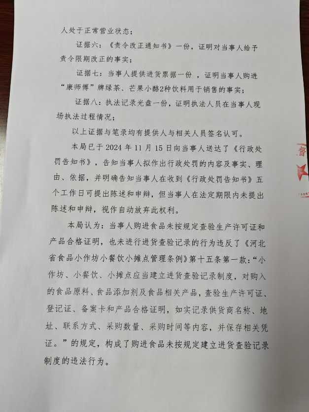 涞市监 〔2024〕泉坊44号涞源县勇哥小吃店购进食品未按规定建立进货查验记录制度案