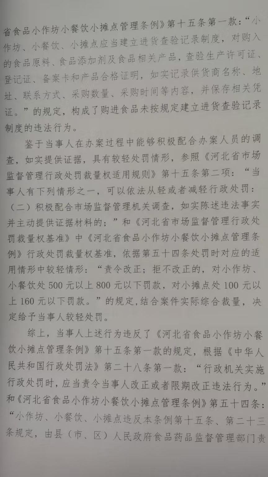 涞市监处罚〔2024〕银坊15号涞源县车站小吃店涉嫌购进食品未按规定建立进货查验记录制度案