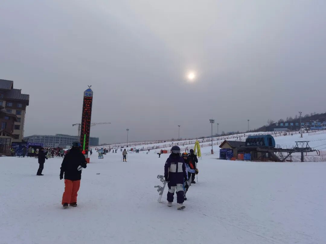 夕阳西下,七山滑雪场日场结束,夜场即将开启。周亚梅 程雅洁 摄