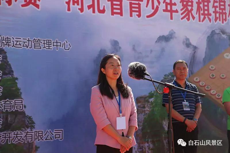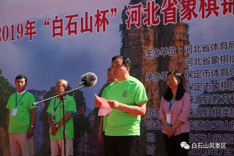 白石山景区总经理毕东林在开幕式上致辞,他说,希望参加今天象棋比赛的选手在21度的白石山,释放360度的激情,赛出水平、赛出风格!