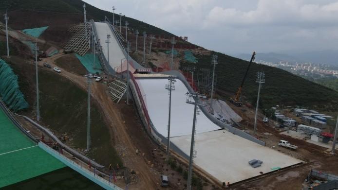 7月19日,北京2022冬奥会迎来开幕倒计时200天。位于涞源县的国家跳台滑雪训练科研基地正在紧张施工中。目前世界首例可在夏季使用的单板滑雪大跳台正在进行检测,准备迎接国家队运动员的到来,为备战冬奥助力。