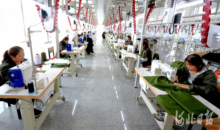 近日,位于河北省涞源县的河北雄源服装科技有限公司员工进行服装缝制。河北日报记者杜柏桦摄