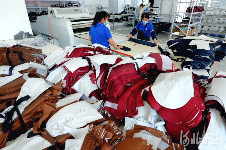 近日,位于河北省涞源县的河北雄源服装科技有限公司裁剪粘衬员工进行服装裁剪。河北日报记者杜柏桦摄