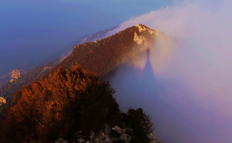 4、白石山“佛光”: 白石山最高峰白石顶,每年夏季出现佛光的机会较多。“佛光”出现要求的条件比较苛刻,难得一见。