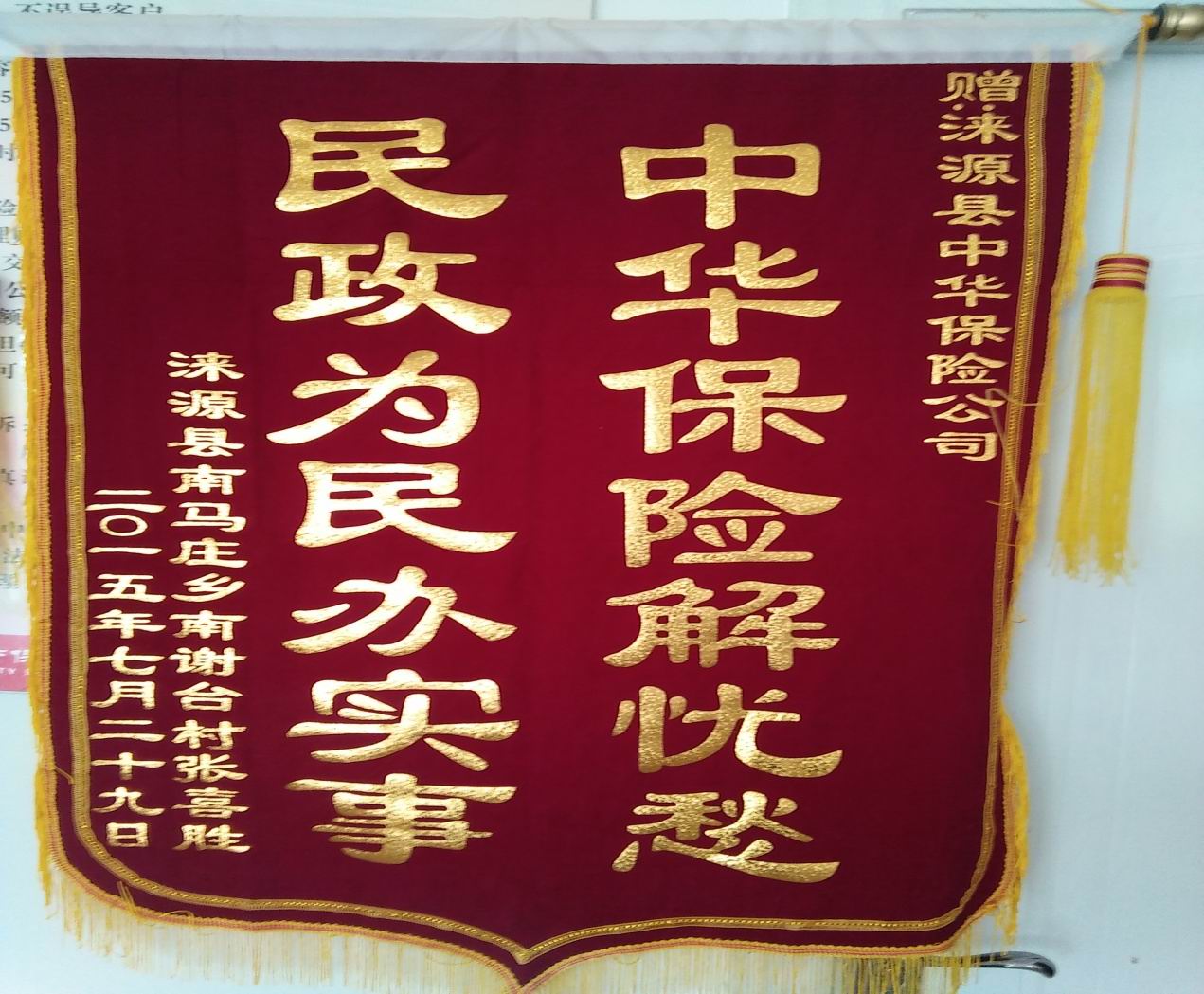2015年7月20日,中华保险承保的涞源县农房保险理赔第一案,再一次得到广大农户的认可。