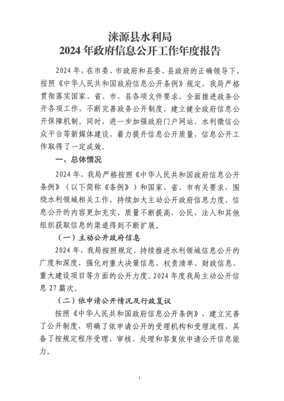 涞源县水利局2024年政府信息公开工作年度报告