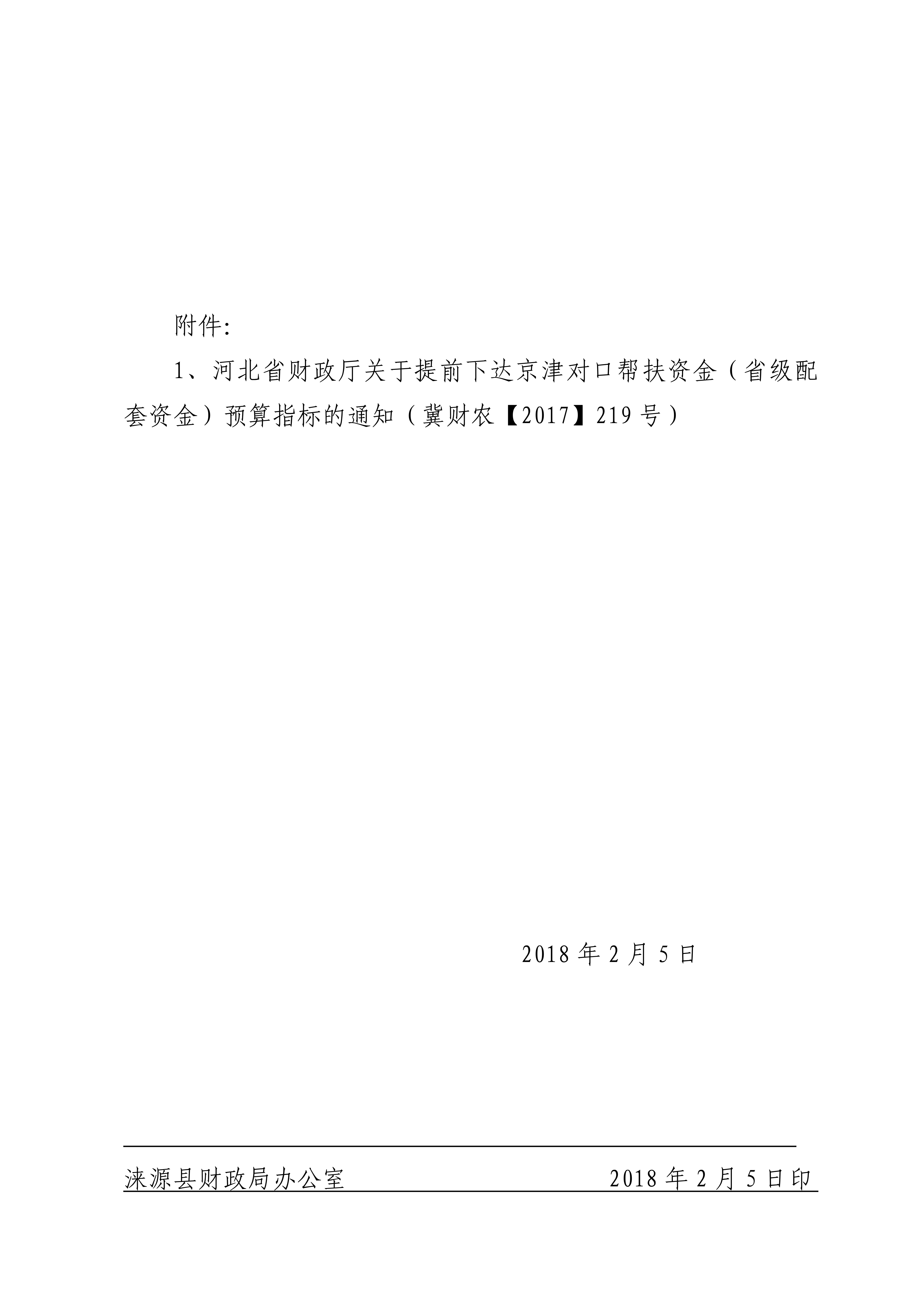 涞源县财政局关于上级提前下达2018年专项扶贫及涉农整合资金的通知