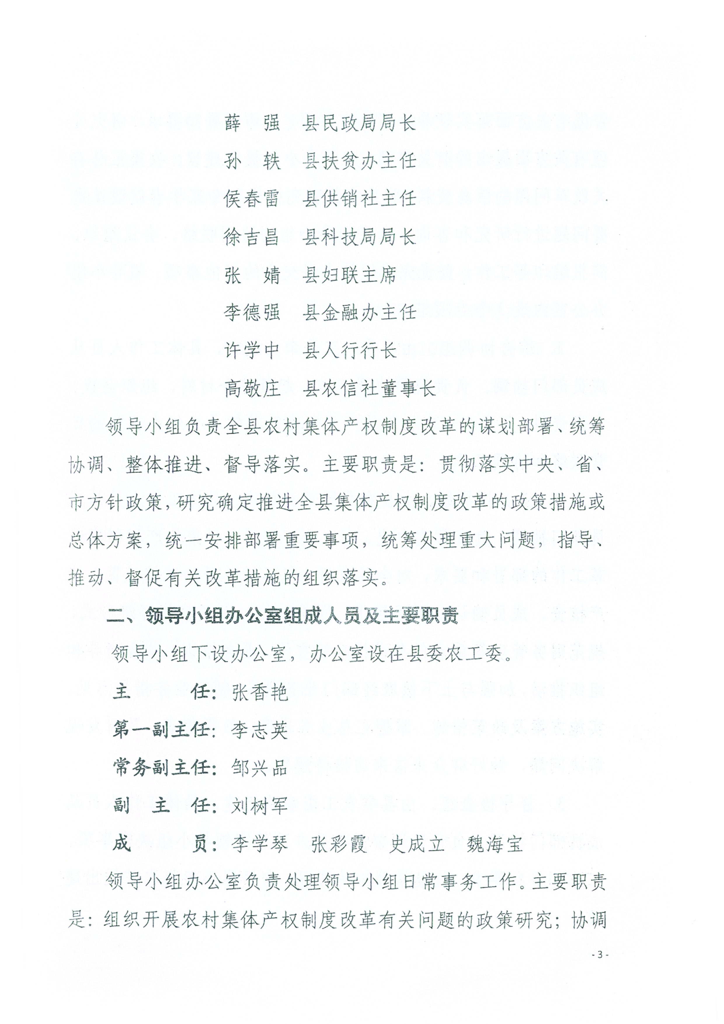 关于成立涞源县农村集体产权制度改革工作领导机构及明确职责分工的通知