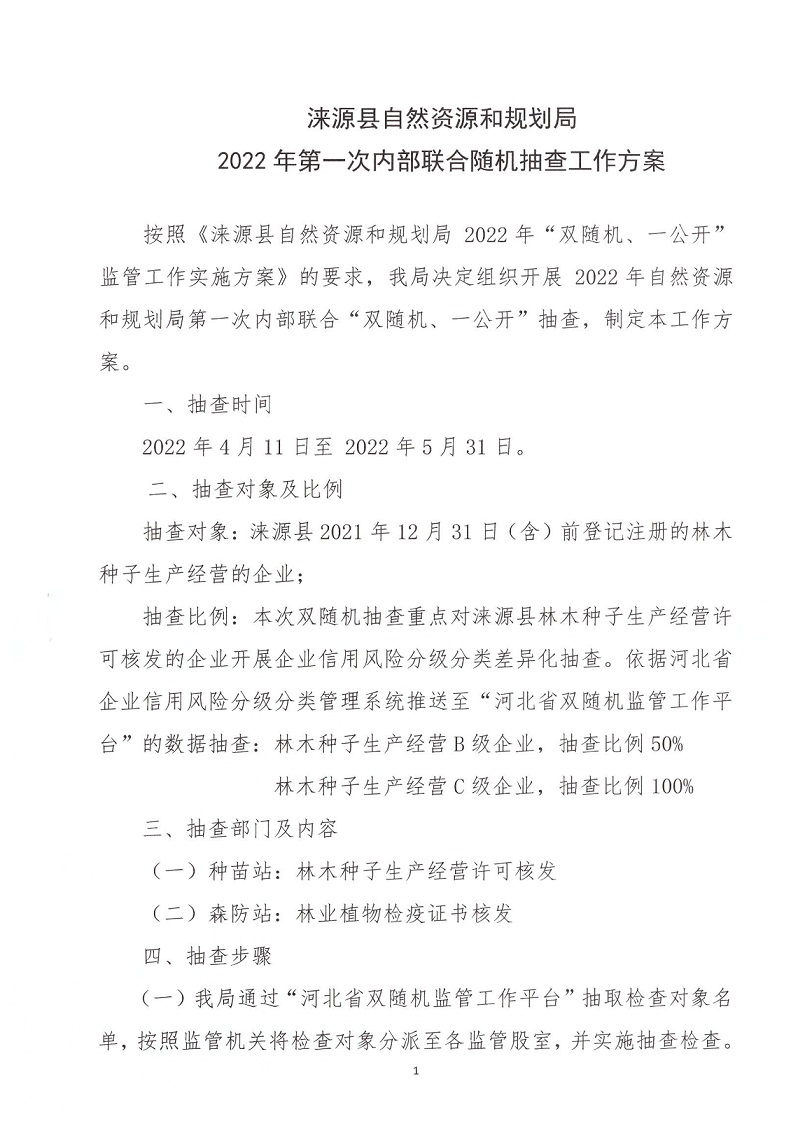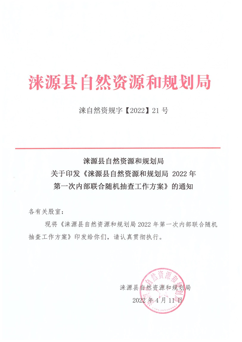 涞源县自然资源和规划局关于印发《涞源县自然资源和规划局2022年第一次内部联合随机抽查工作方案》的通知