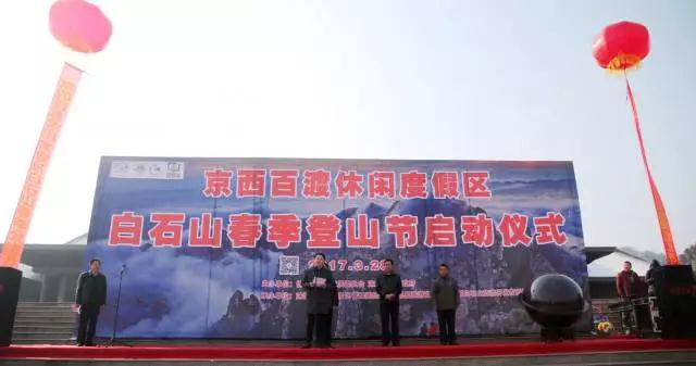 3月28日上午,京西百渡休闲度假区白石山春季登山节启动仪式在白石山游客服务中心广场举行。 保定市旅游委副主任赵世忠、涞源县政府副县长杨柒零、白石山景区管委会主任刘春阳、涞源县旅游文物局局长靳二愣、白石山旅游开发有限公司总经理李杰以及近五百家省内外旅行社代表出席启动仪式。启动仪式由白石山景区管委会主任刘春阳主持。