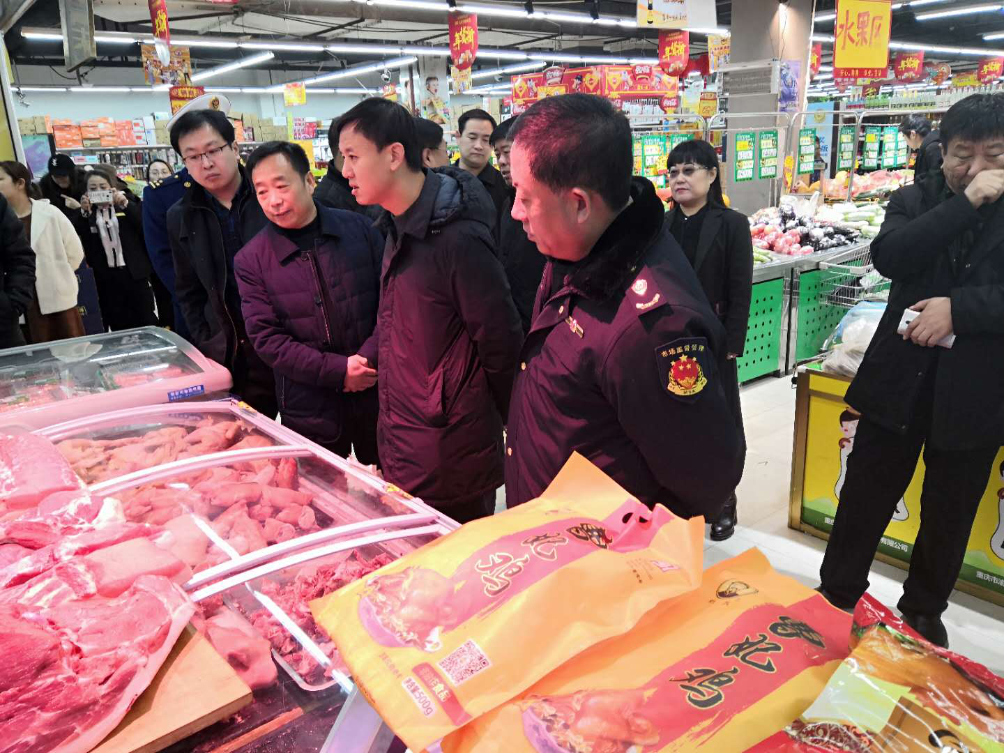 2019年1月26日,县长周峰,副县长徐润雨、汪源,在县市场监管局、农业局、公安局、应急管理局等部门负责同志的陪同下,对节日市场食品经营单位进行了调研督导检查。