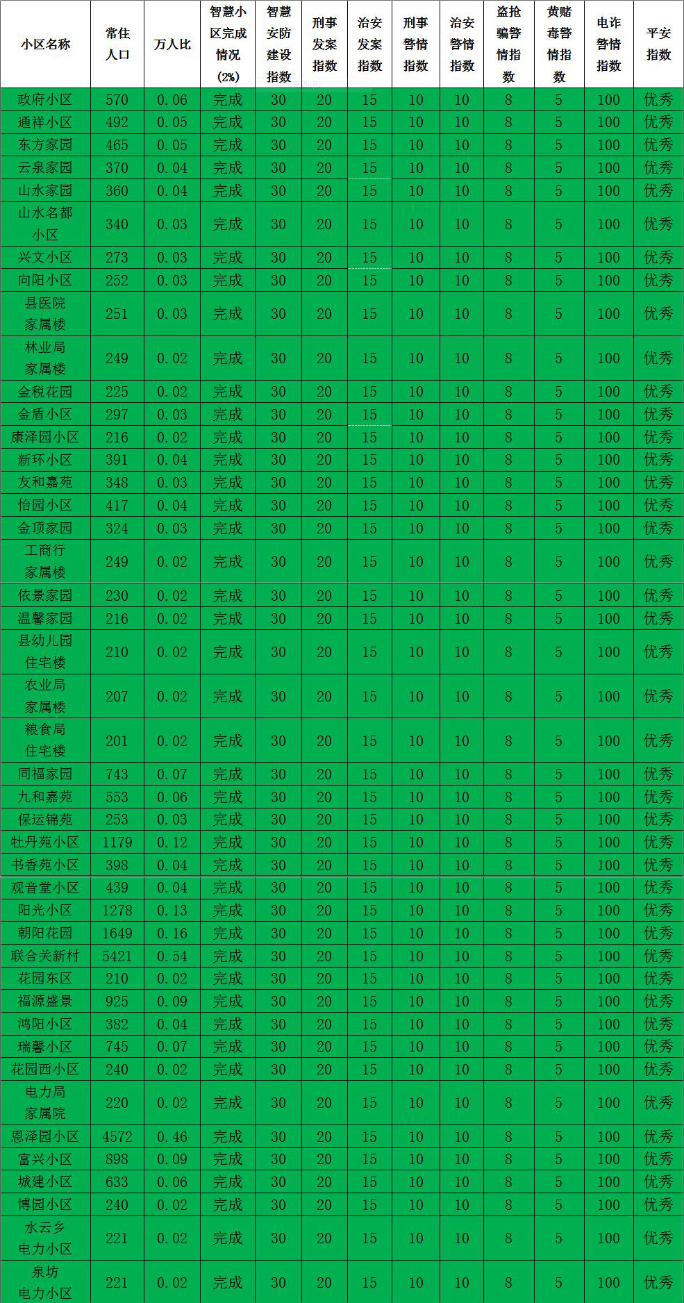 安宁环境共建共治,平安涞源你我共享。涞源公安定期发布我县居民小区安防建设,刑事治安警情等有关指数,综合反映了我县住宅小区居民生活环境整体安全状况,使广大群众直观了解居住地的治安形势,进一步提升了积极参与平安建设的热情,助推共建共治共享新格局的全面完善。