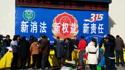 为了适应新《消法》新的要求,在今年的12315活动开展中,涞源县工商局12315指挥中心开展了以“新消法 新权益 新责任”为主题的系列宣传活动,首先我局利用三天恰逢农村大集的时间到王安镇、东团堡、走马驿等乡镇,对新《消法》的亮点内容和假冒伪劣商品的鉴别方法、《食品安全法》、消费者如何正确投诉解决纠纷等等和消费者密切相关的知识的宣传, 3.15当天在客流量比较大的涞百购物广场和信誉商厦等两地举办了“3.15”宣传咨询现场活动,现场受理消费者申诉、举报案件达十余起,此次3.15系列宣传活动共发放宣传材料5000余份,接受消费者咨询5000余人次,从而让广大消费者了解到自身合法权益受到侵害时,除了到消费维权部门投诉外,还可以拨打12315维权举报电话,或用微信的方式投诉,为构建涞源和谐、放心、安全的消费环境作出了工商人的努力。
