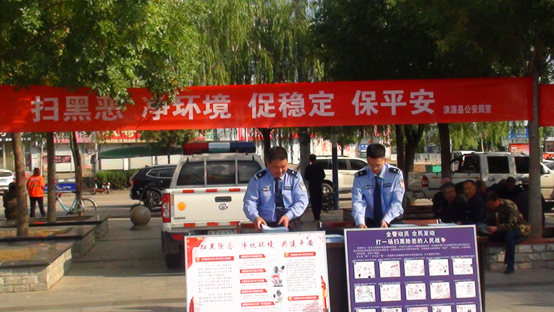 为推进扫黑除恶专项斗争深入开展,充分调动和激发全民参与扫黑除恶斗争的积极性、主动性,进一步扩大群众的知晓率和满意度。按照县委政法委要求部署,9月16日上午,涞源县公安局在城区昌源公园组织民警开展扫黑除恶专项斗争宣传活动。 县委常委、政法委书记王晓明同志、副县长、公安局长张继伟同志在现场进行视察指导,细心与在场群众进行交流。王书记要求在宣传过程中要重点强调此次活动的重要意义,宣传民警要充分发挥主管能动性,以此次活动为契机将扫黑除恶斗争进一步引向深入;张局长对在场宣传民警提出要求:要做好政策宣讲工作,对群众提出的问题要耐心细致的解答清楚,让群众进一步理解扫黑除恶专项斗争的相关规定。