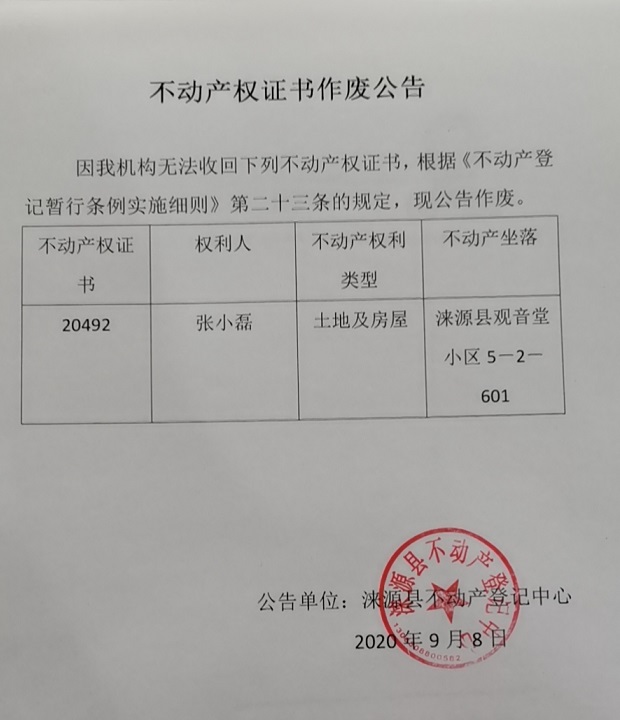 涞源县不动产登记中心