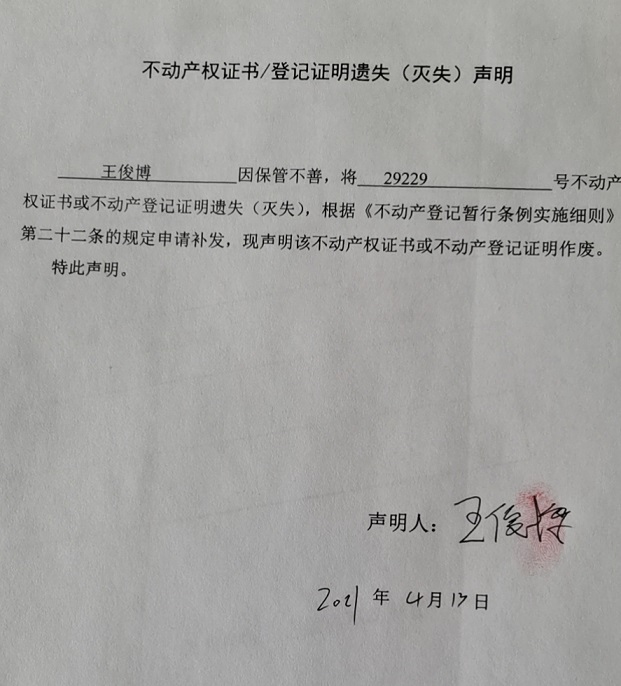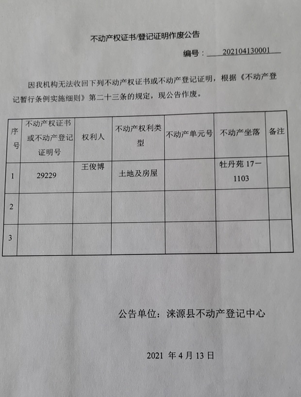 涞源县不动产登记中心公告