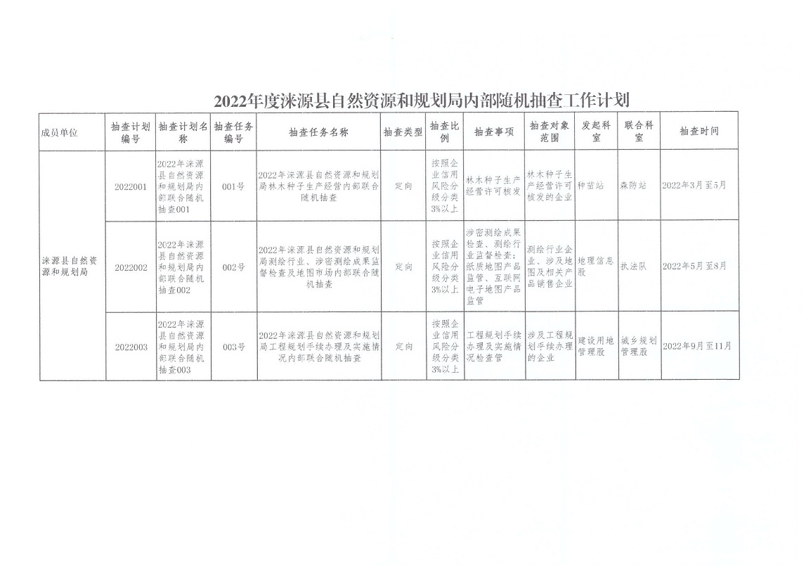 2022年度涞源县自然资源和规划局双随机抽查工作计划
