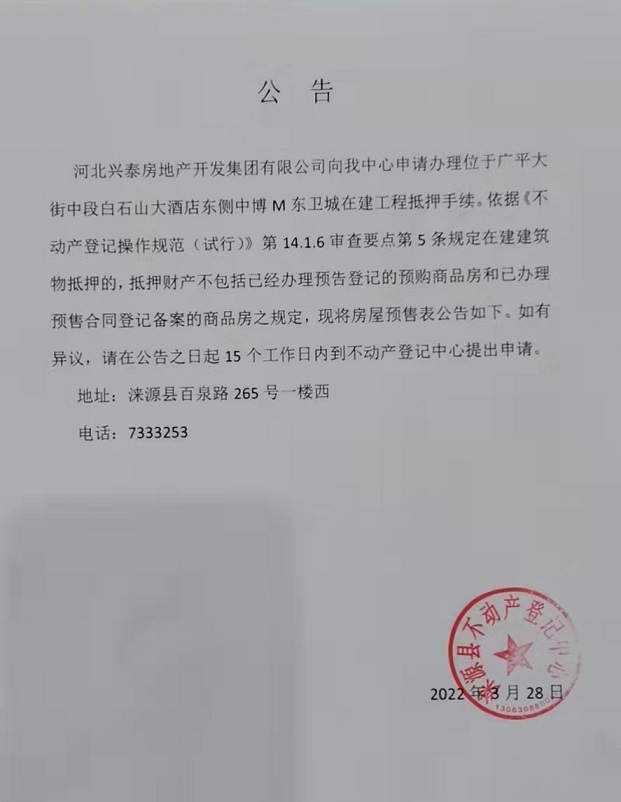 涞源县不动产登记中心公告