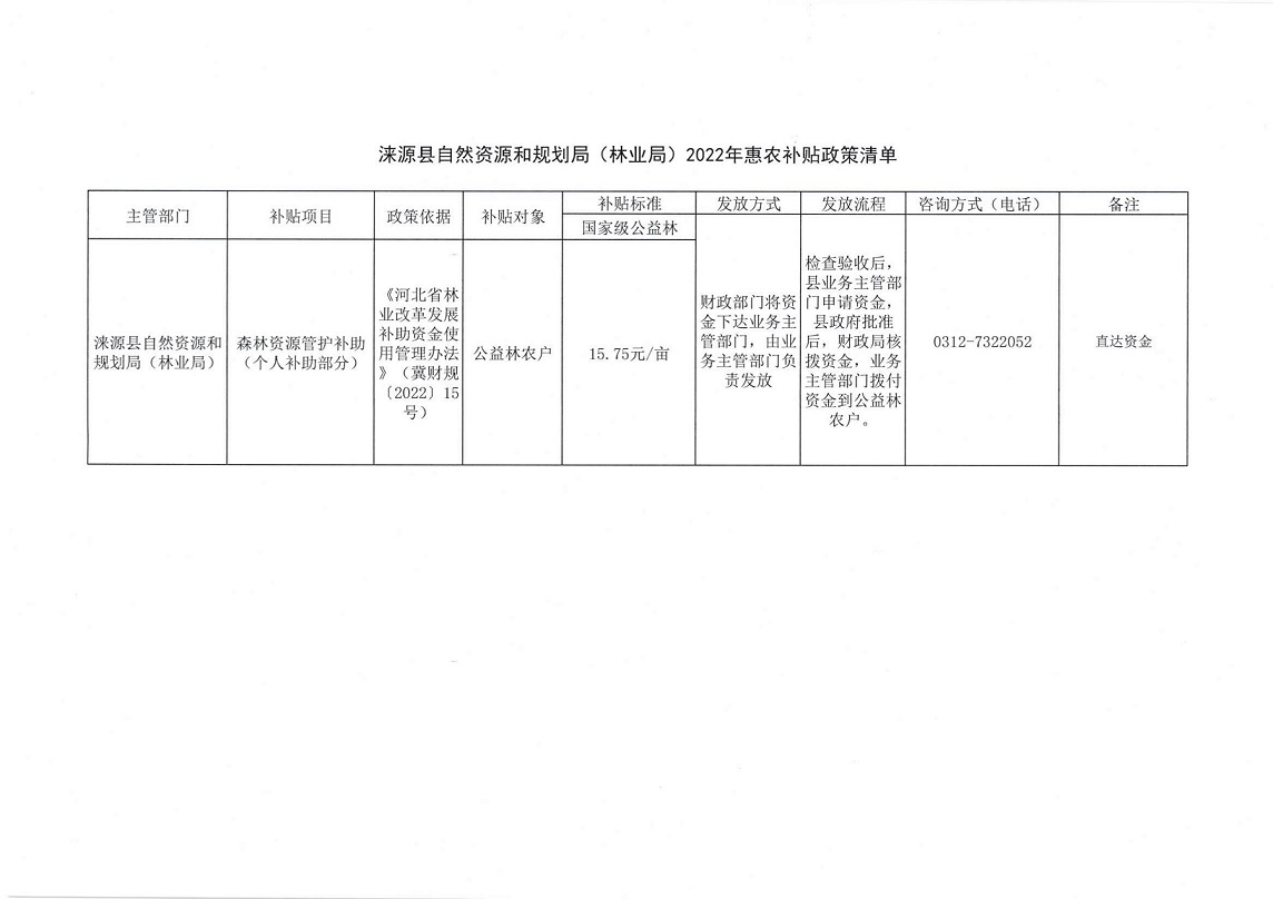 涞源县自然资源和规划局(林业局)2022年惠农补贴政策清单