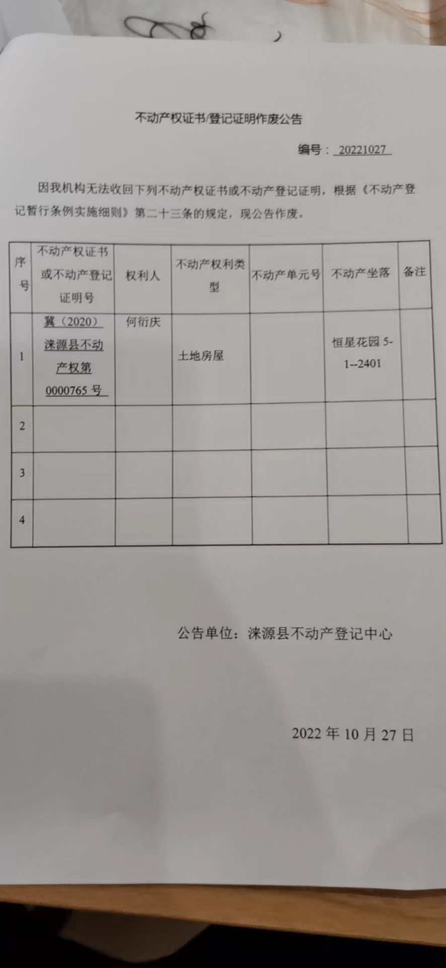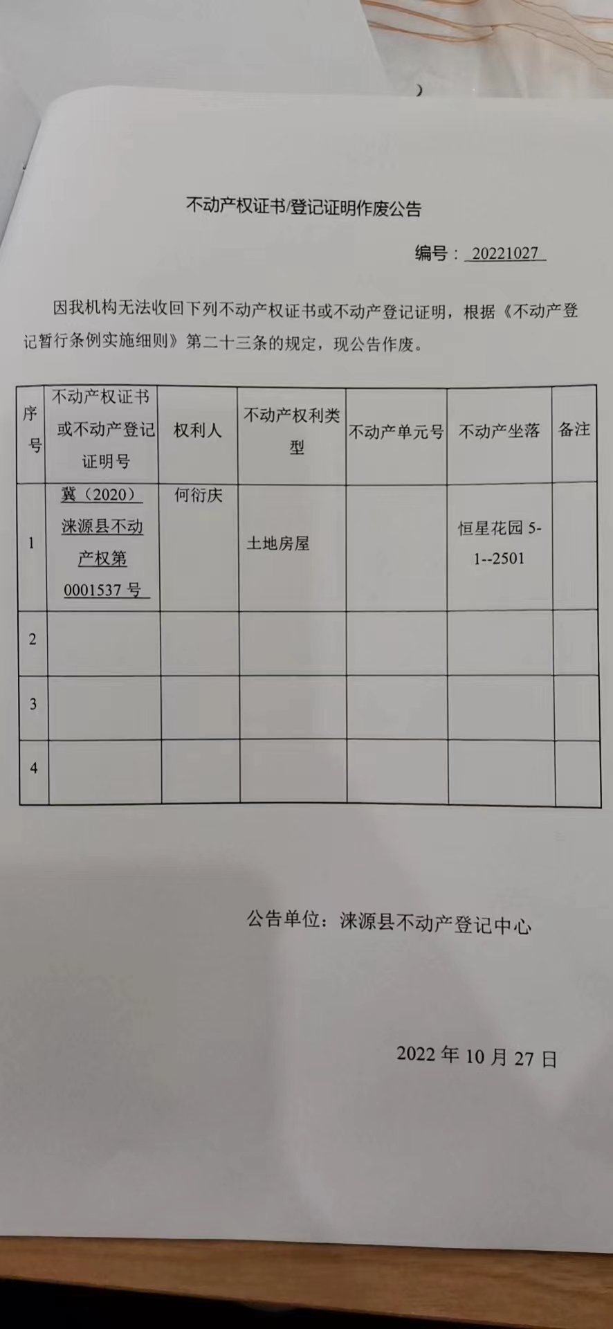 不动产权证书/登记证明遗失声明/不动产权证书/登记证明作废公告