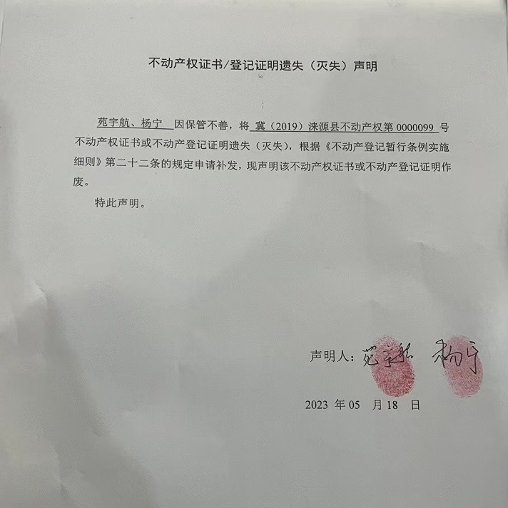涞源县不动产登记中心不动产权证书作废公告