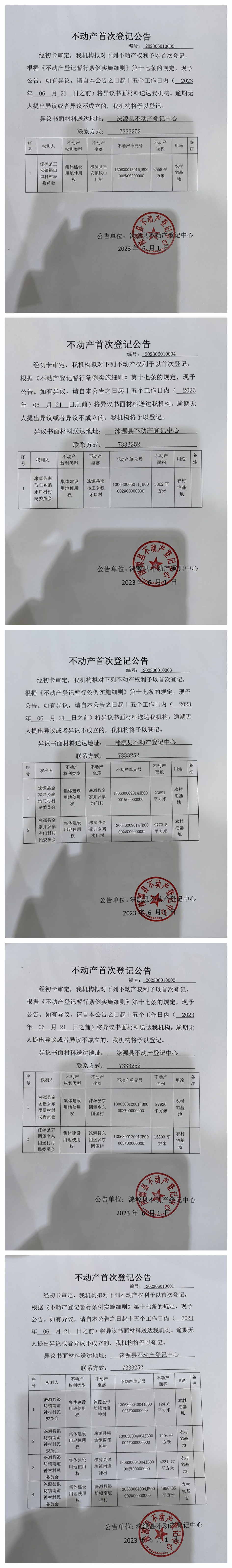 涞源县不动产登记中心不动产首次登记公告