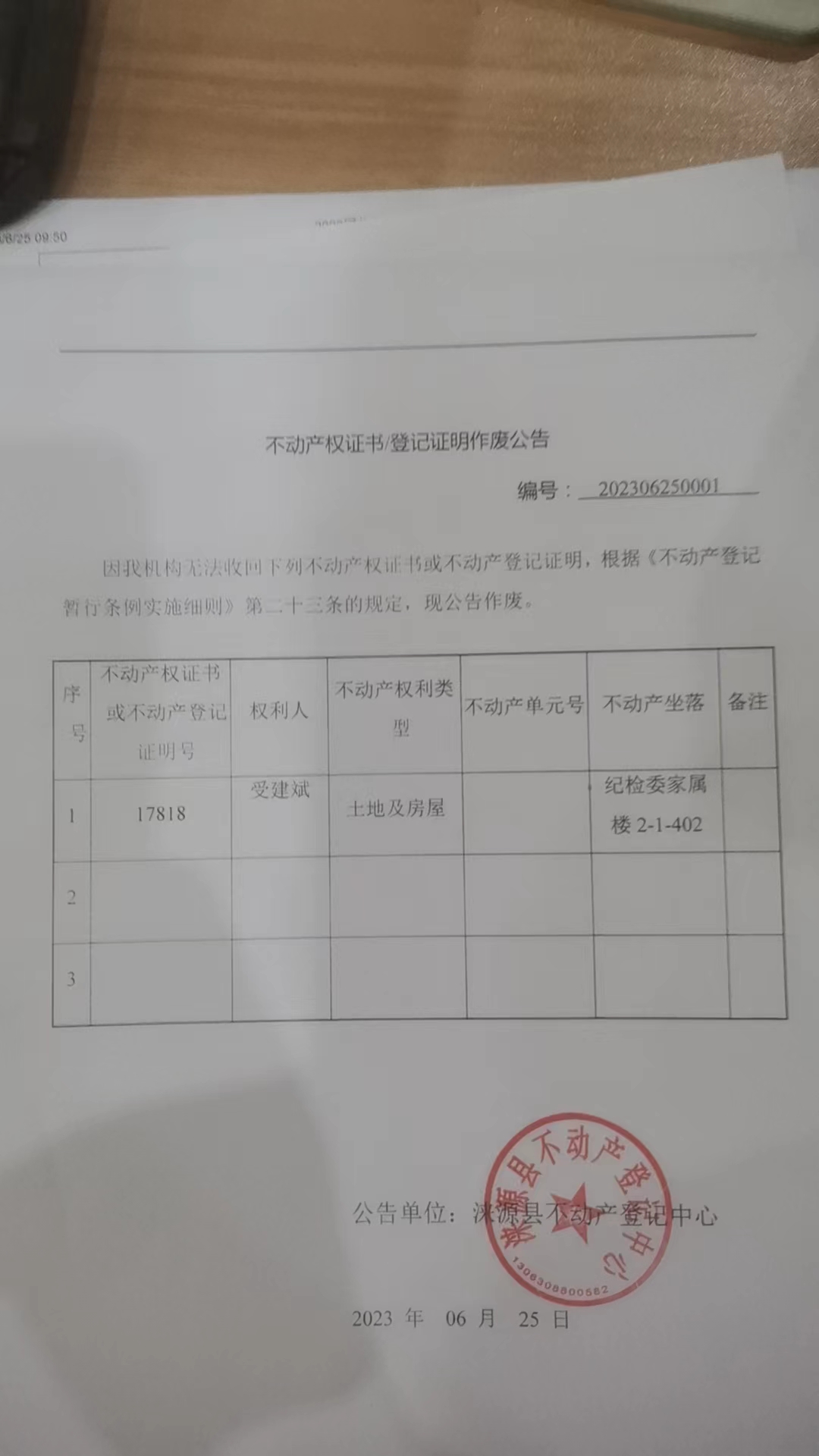 涞源县不动产登记中心不动产权证书作废公告