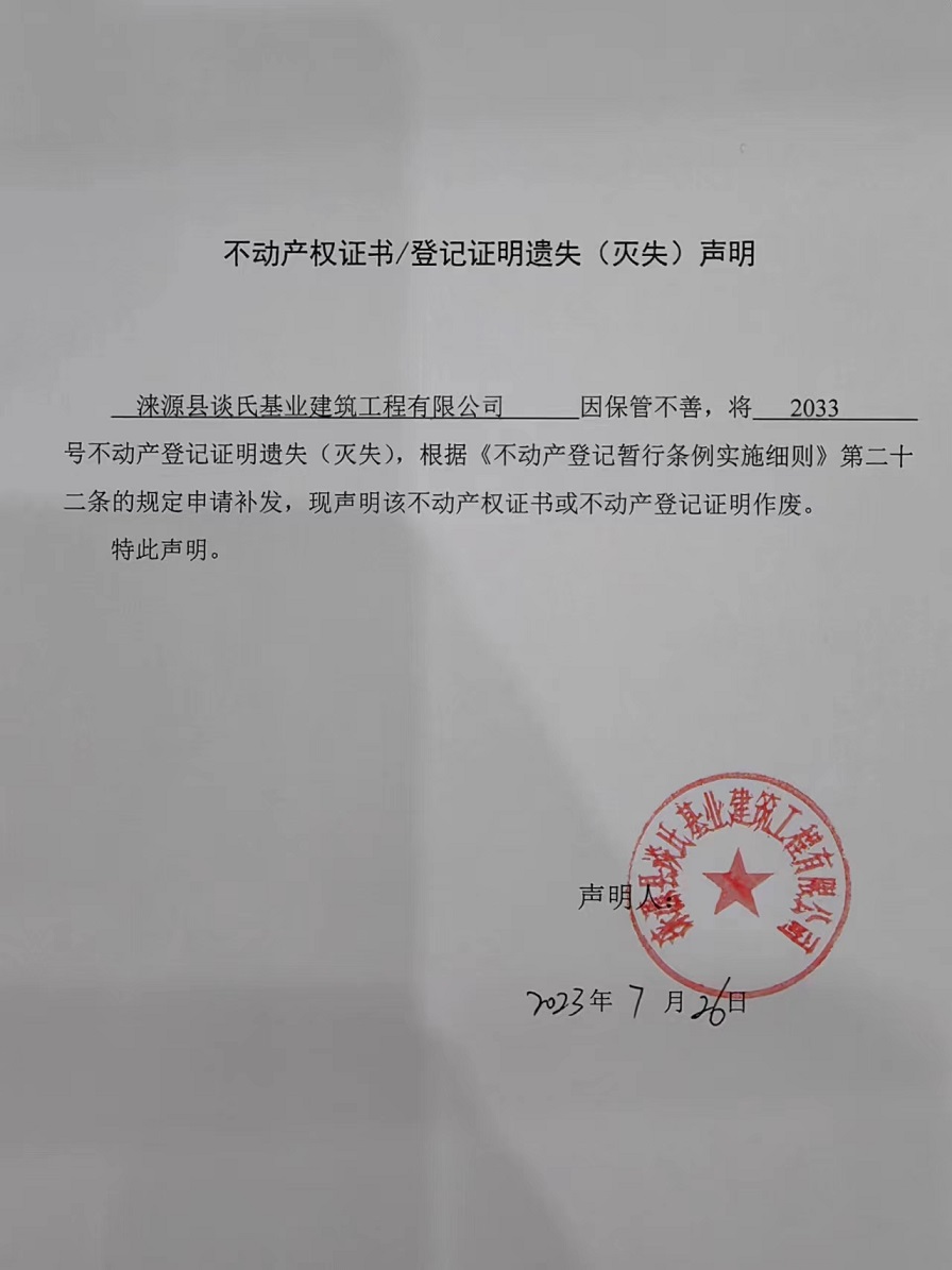 涞源县不动产登记中心不动产权证书作废公告