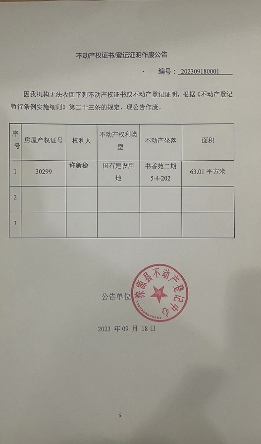涞源县不动产登记中心不动产权证书作废公告
