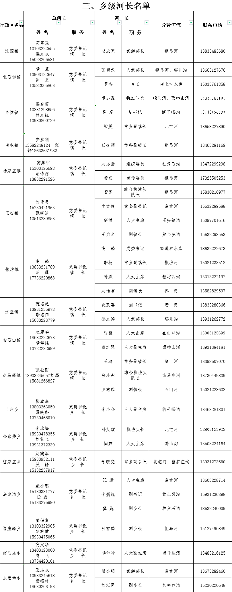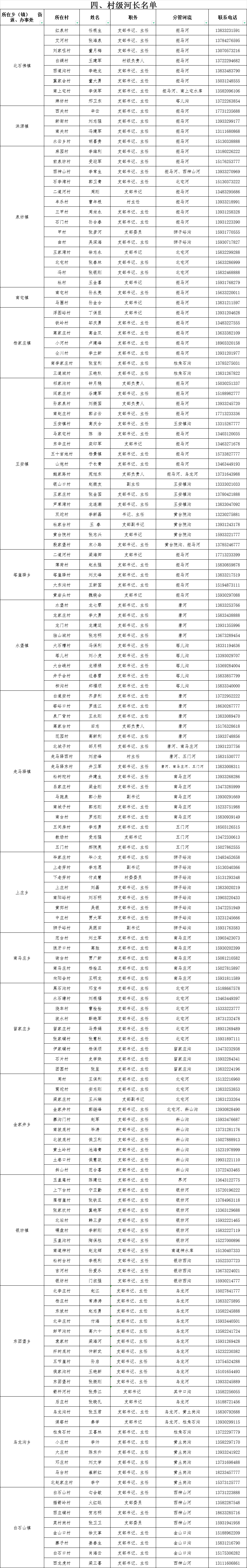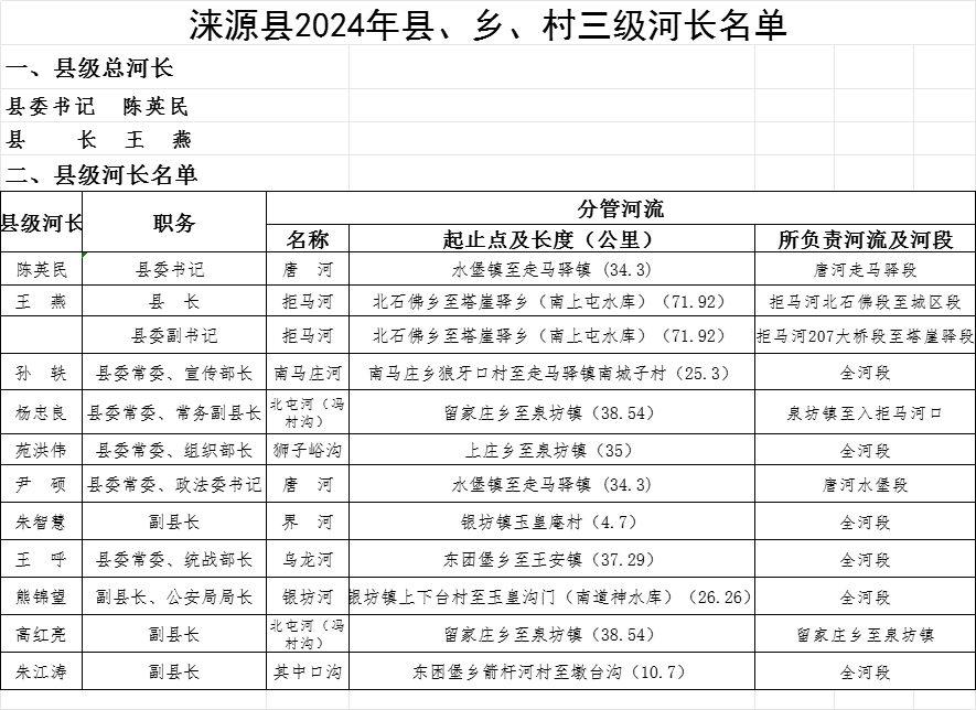 | 涞源县2024年度县、乡、村三级河长名单公示 | ||||