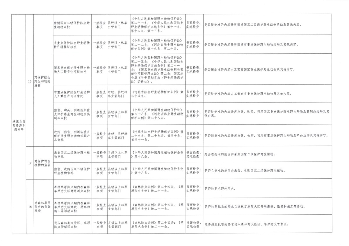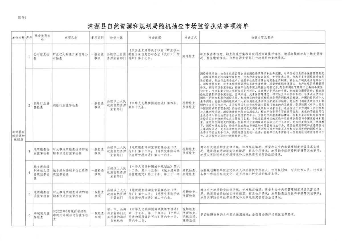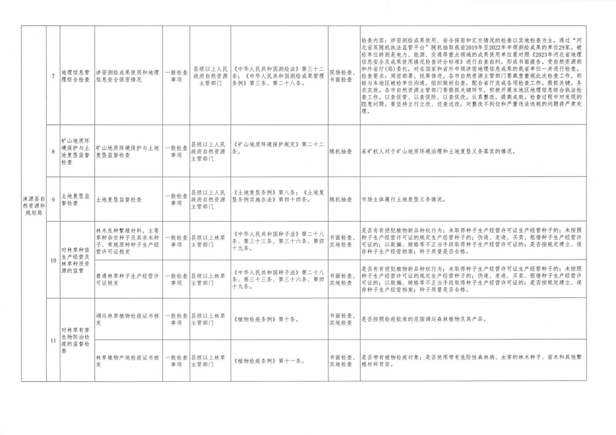 涞源县自然资源和规划局随机抽查事项清单(2024版)