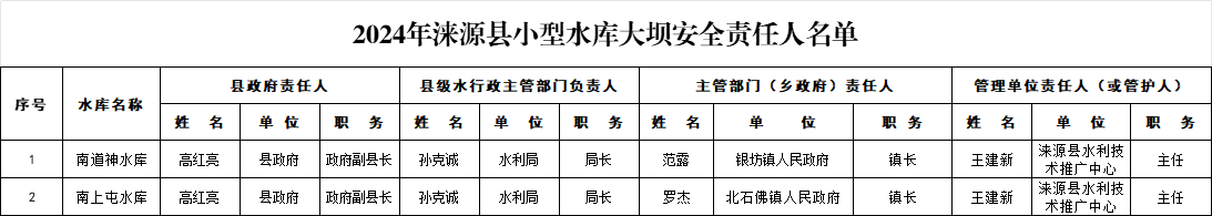 2024年涞源县小型水库大坝安全责任人名单