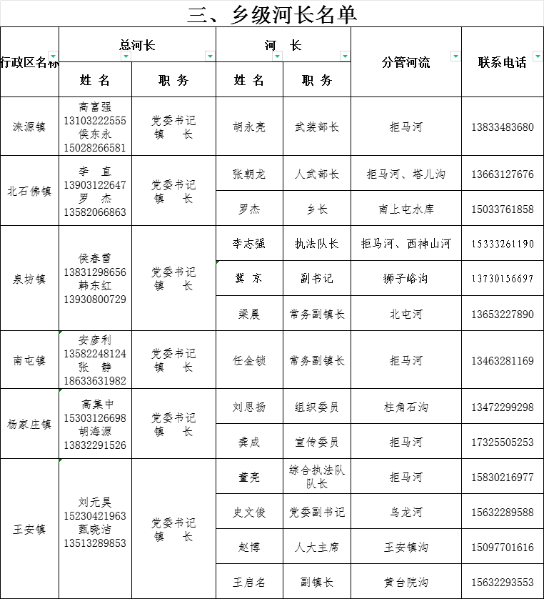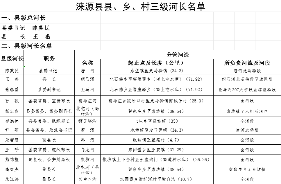 涞源县2024年度县、乡、村三级河长名单公示