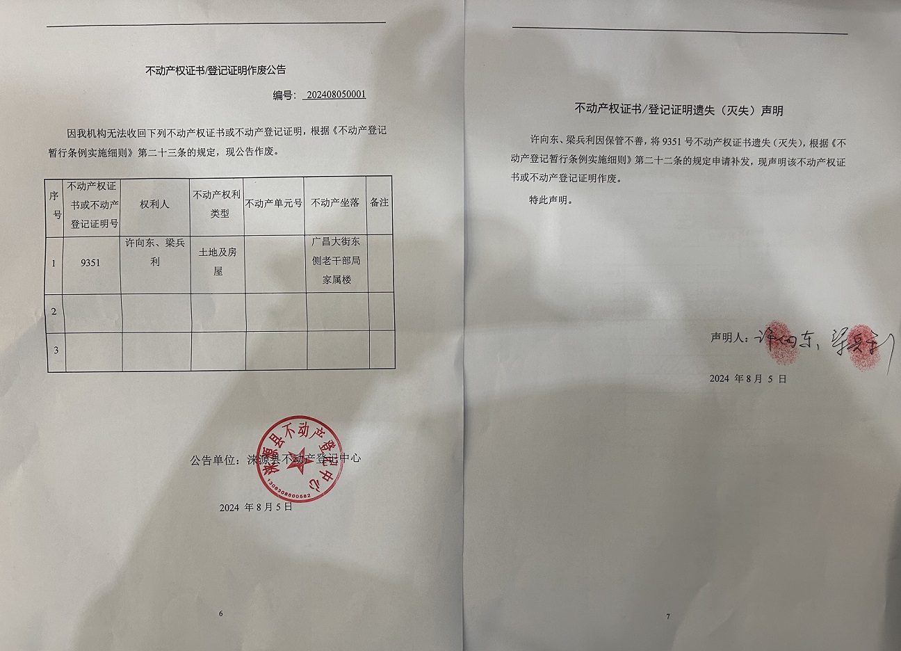 涞源县不动产登记中心不动产权证书作废公告