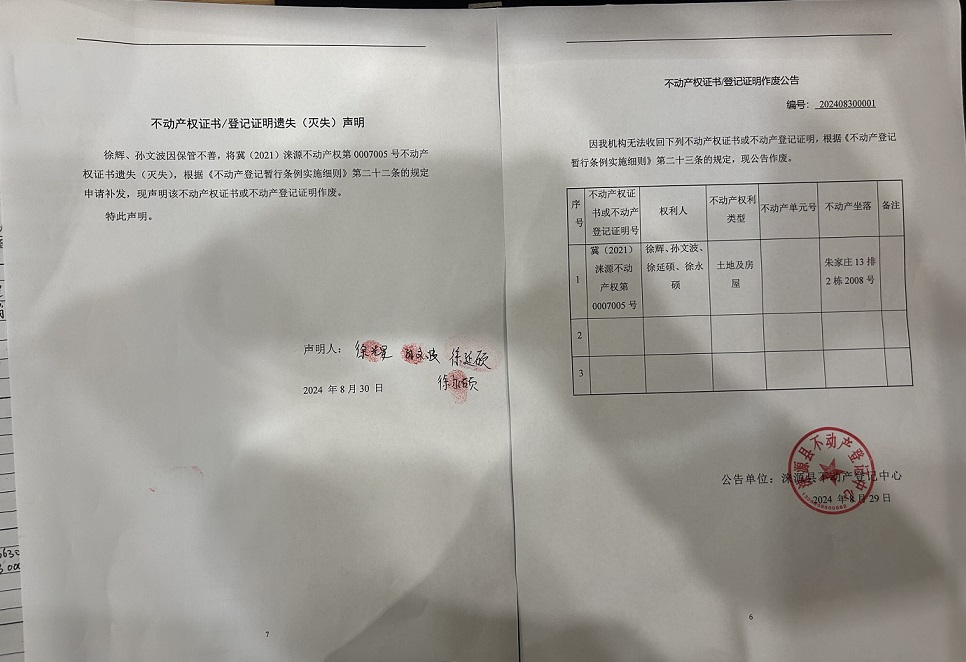 涞源县不动产登记中心不动产权证书作废公告