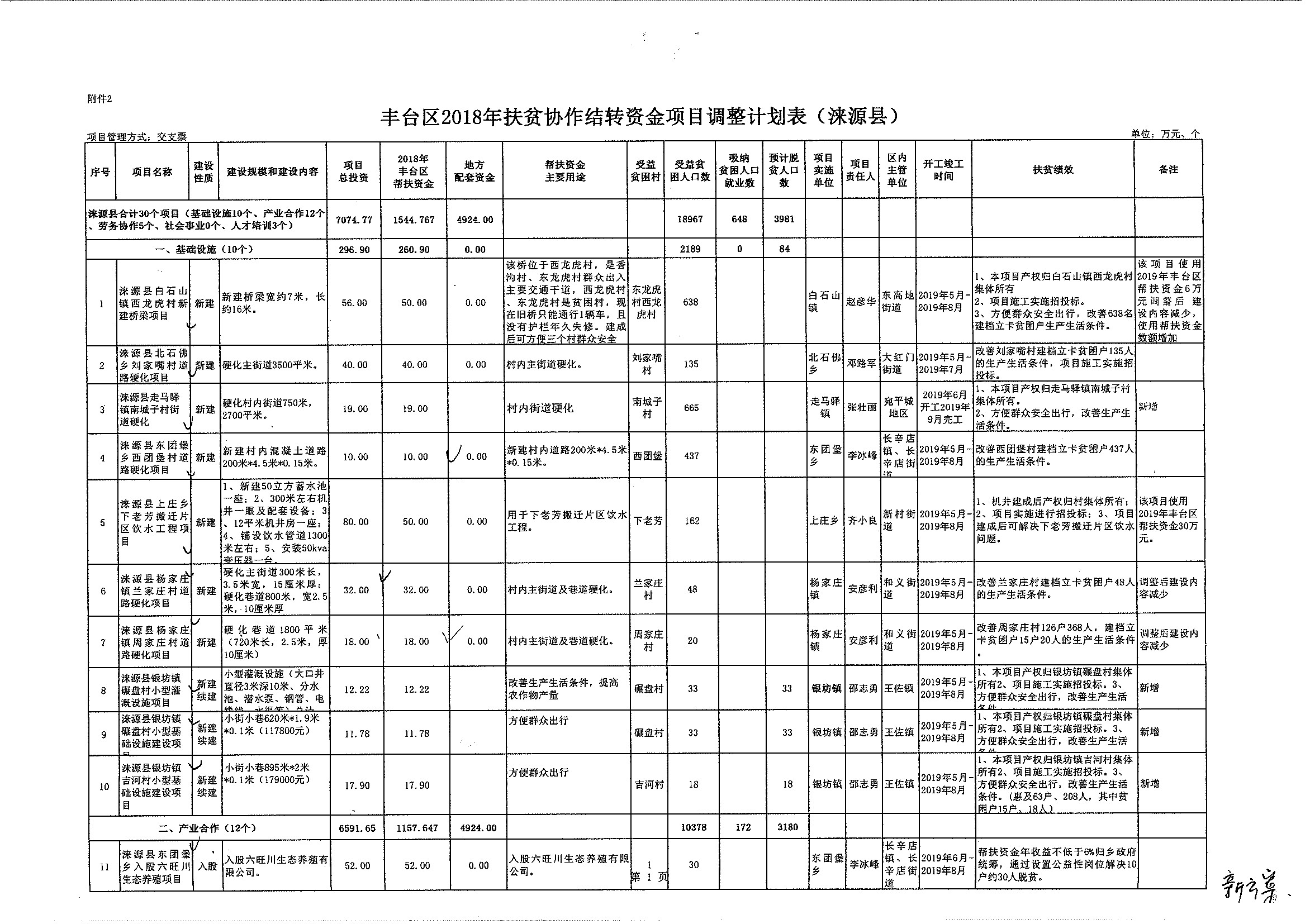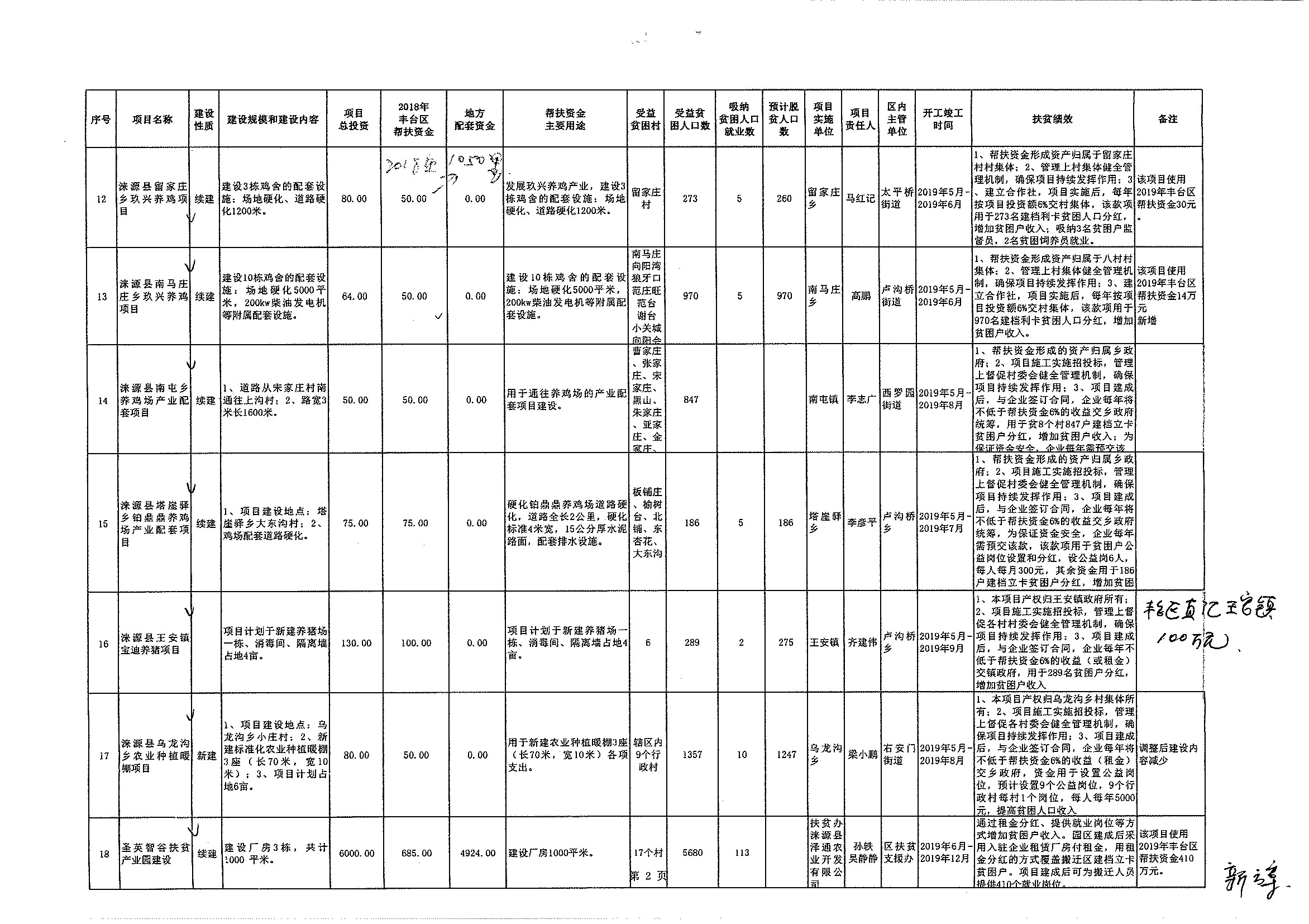 丰台区2018年扶贫协作结转资金项目调整计划表(涞源县)