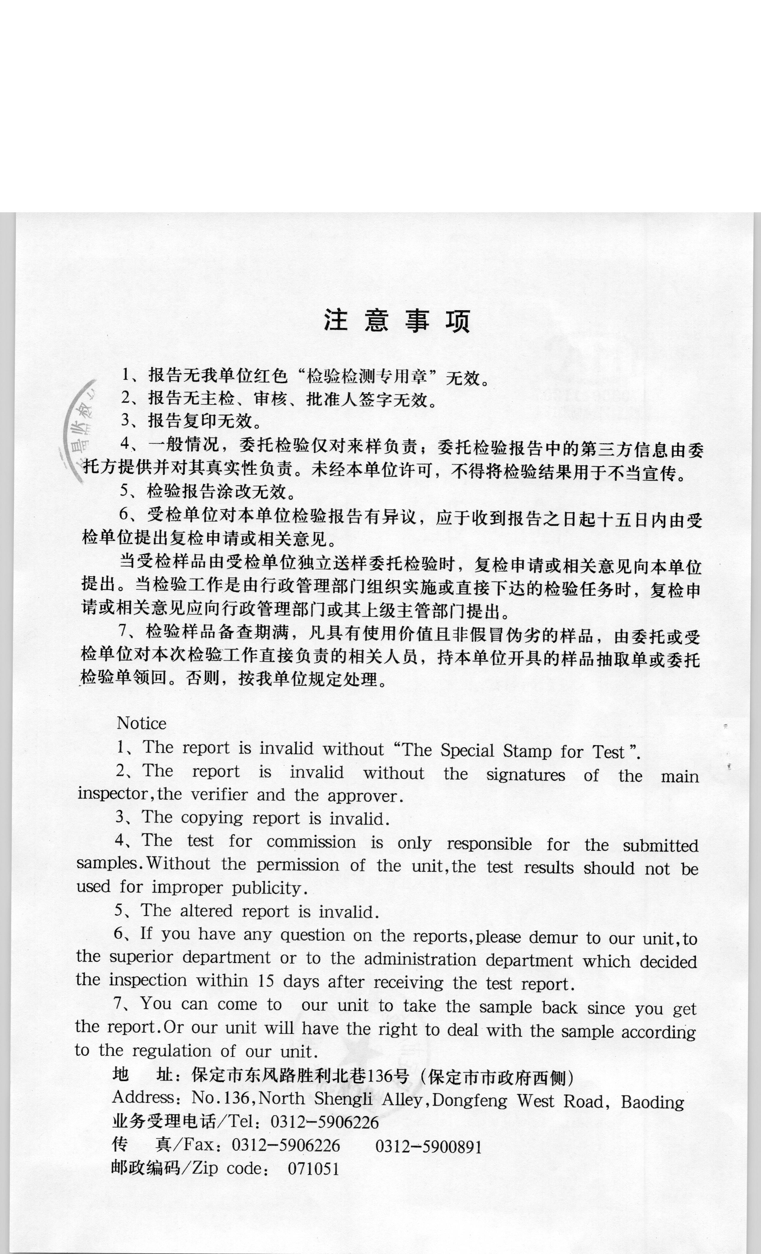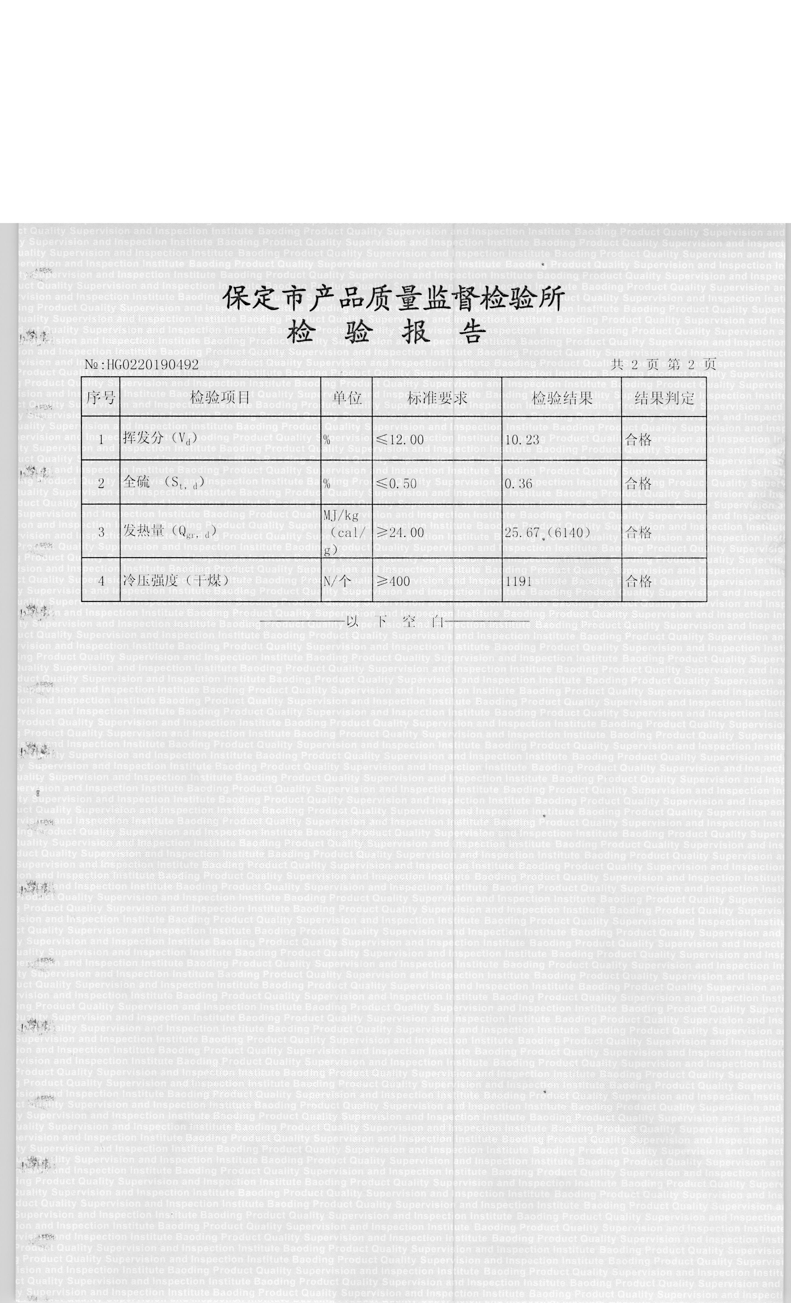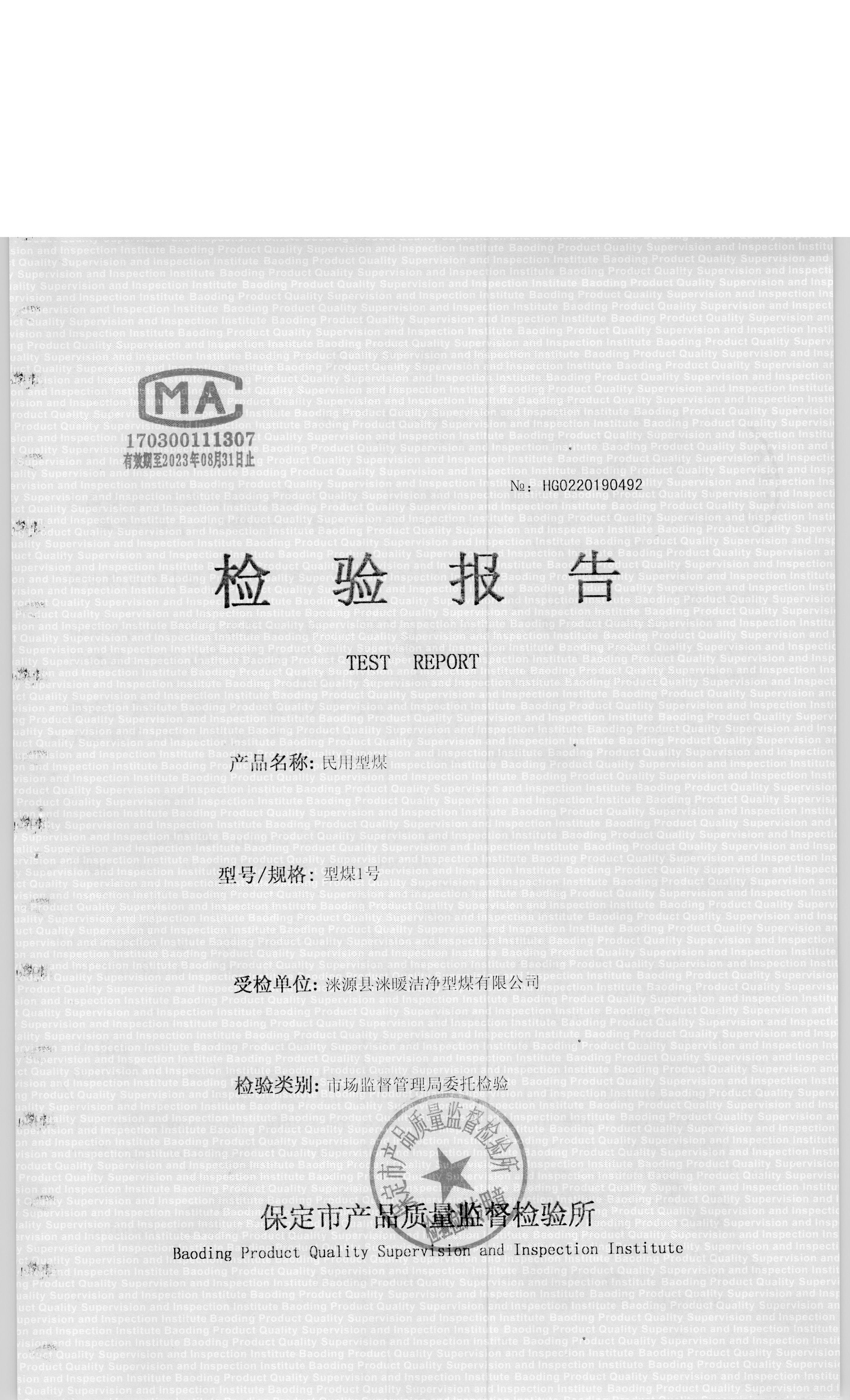涞源县涞暖洁净型煤有限公司型煤1号检验报告