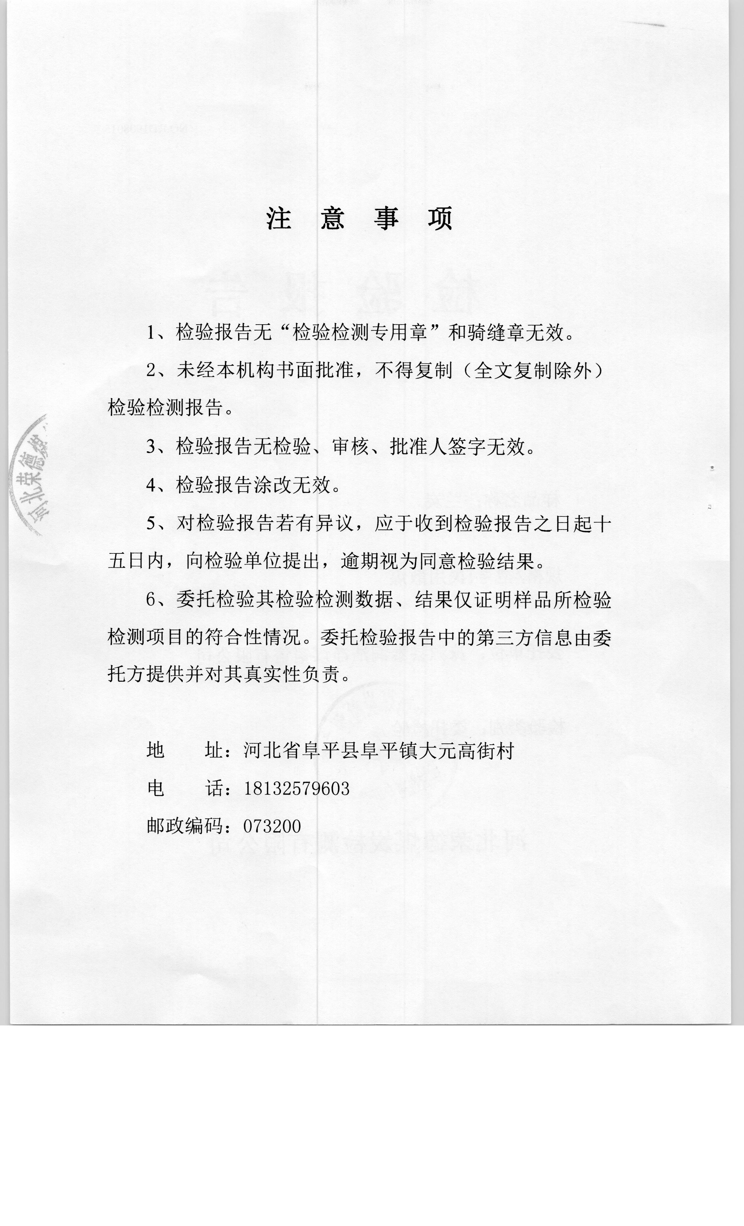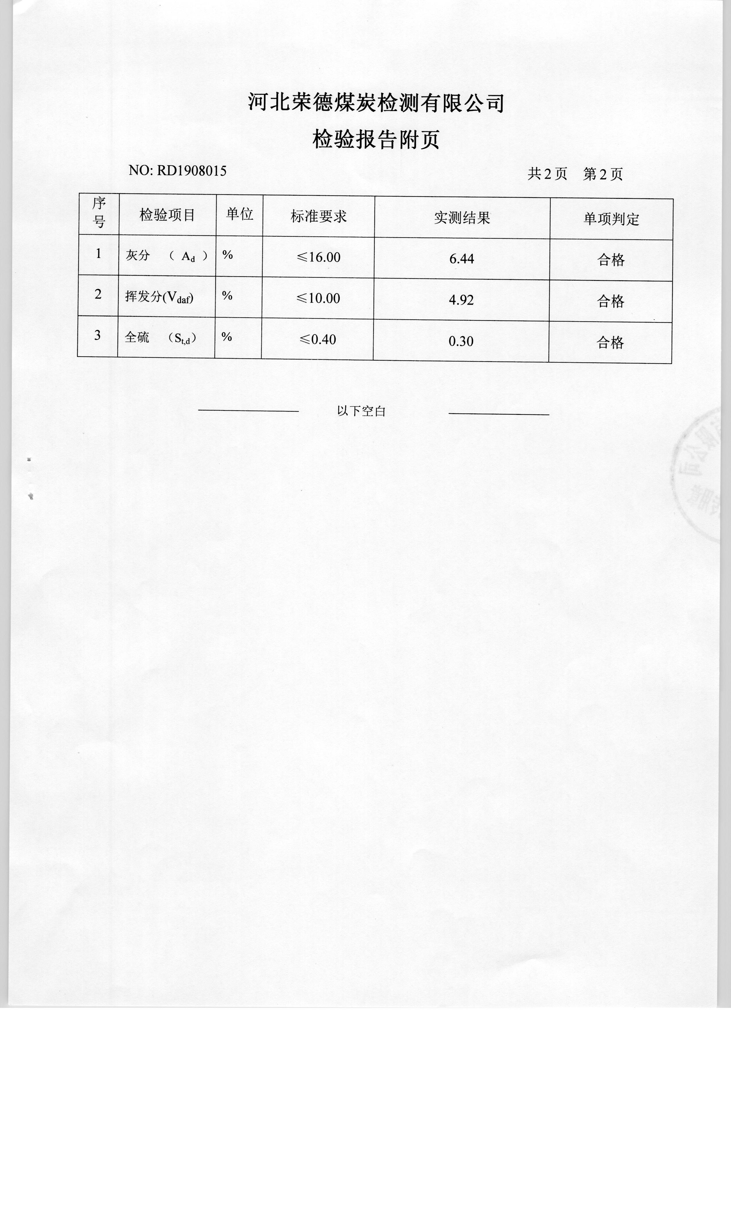 涞源县泰润洁净煤有限公司兰炭检验报告