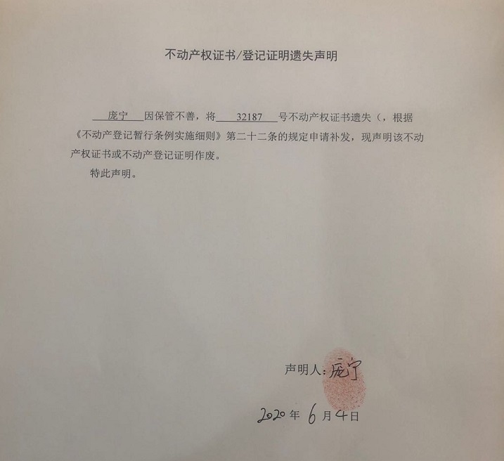 涞源县不动产登记中心公告
