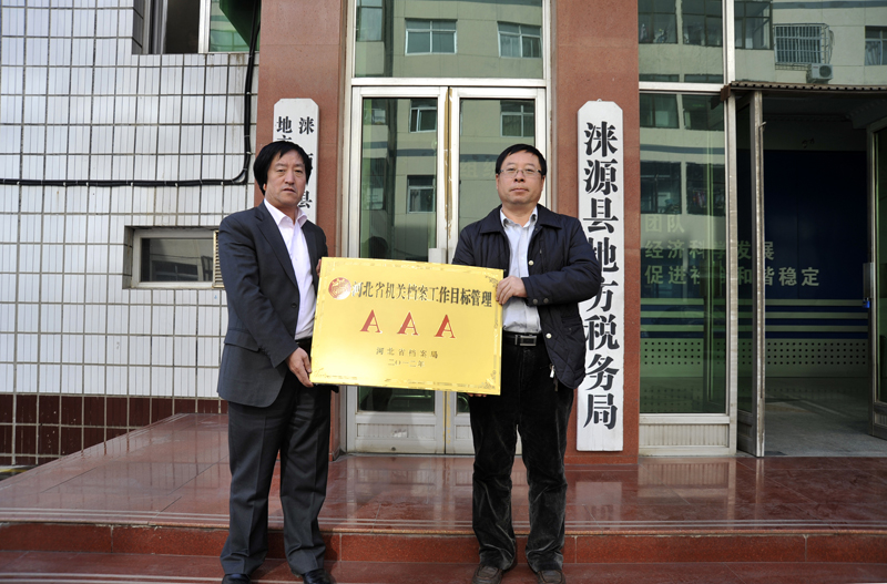 | 近日,涞源县地税局被河北省档案局评为“河北省机关档案工作目标3A”级标准荣誉称号 | ||||