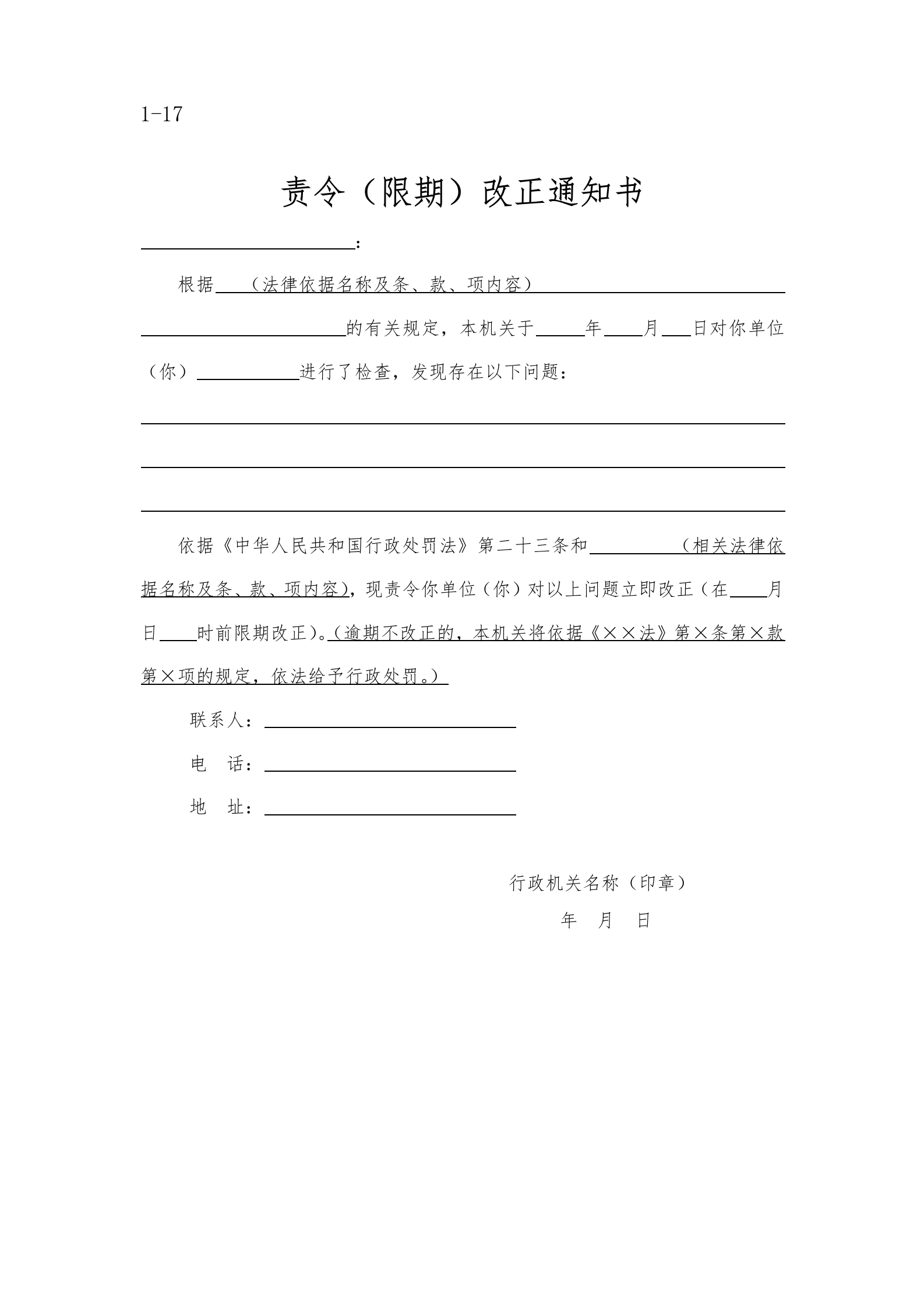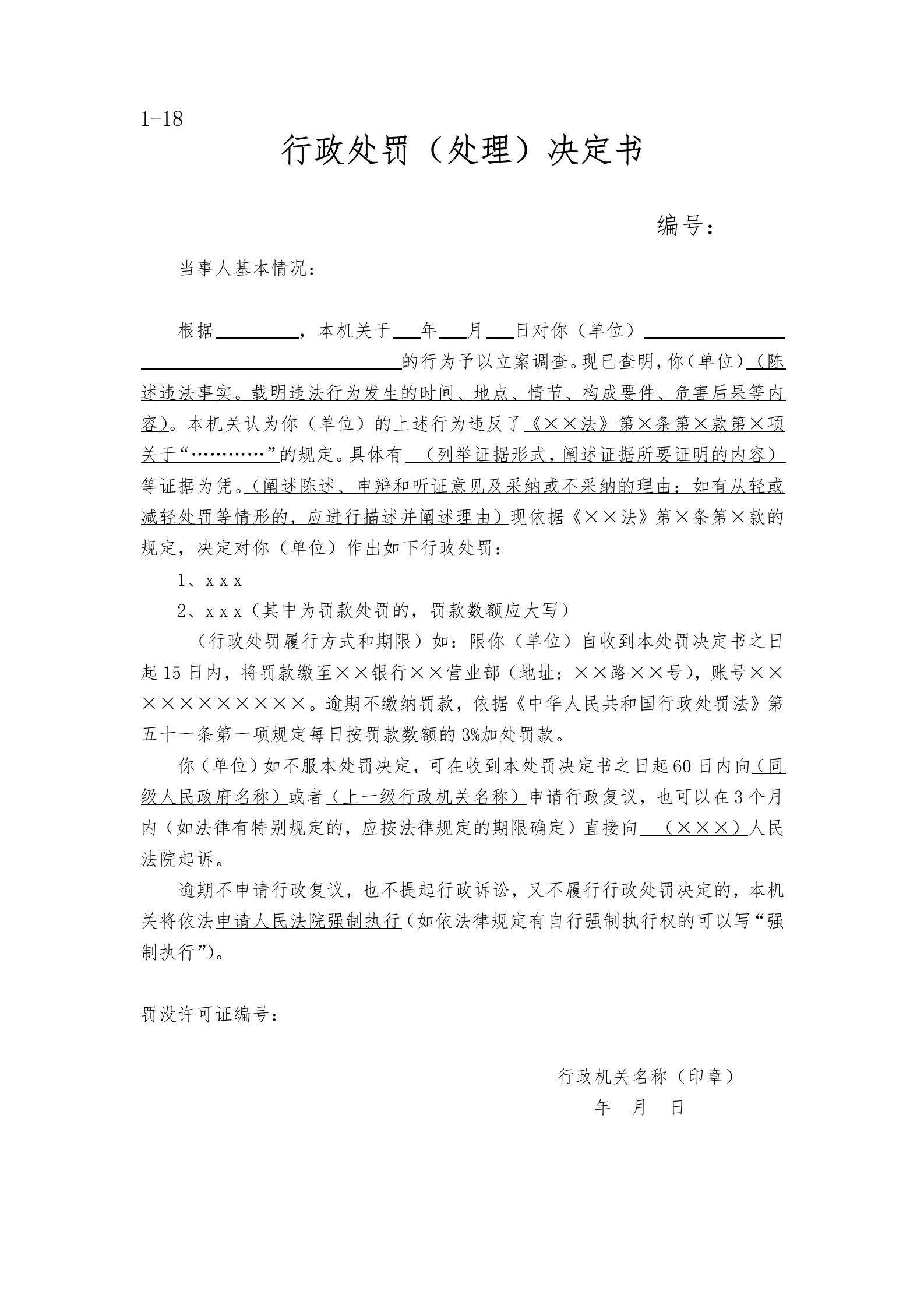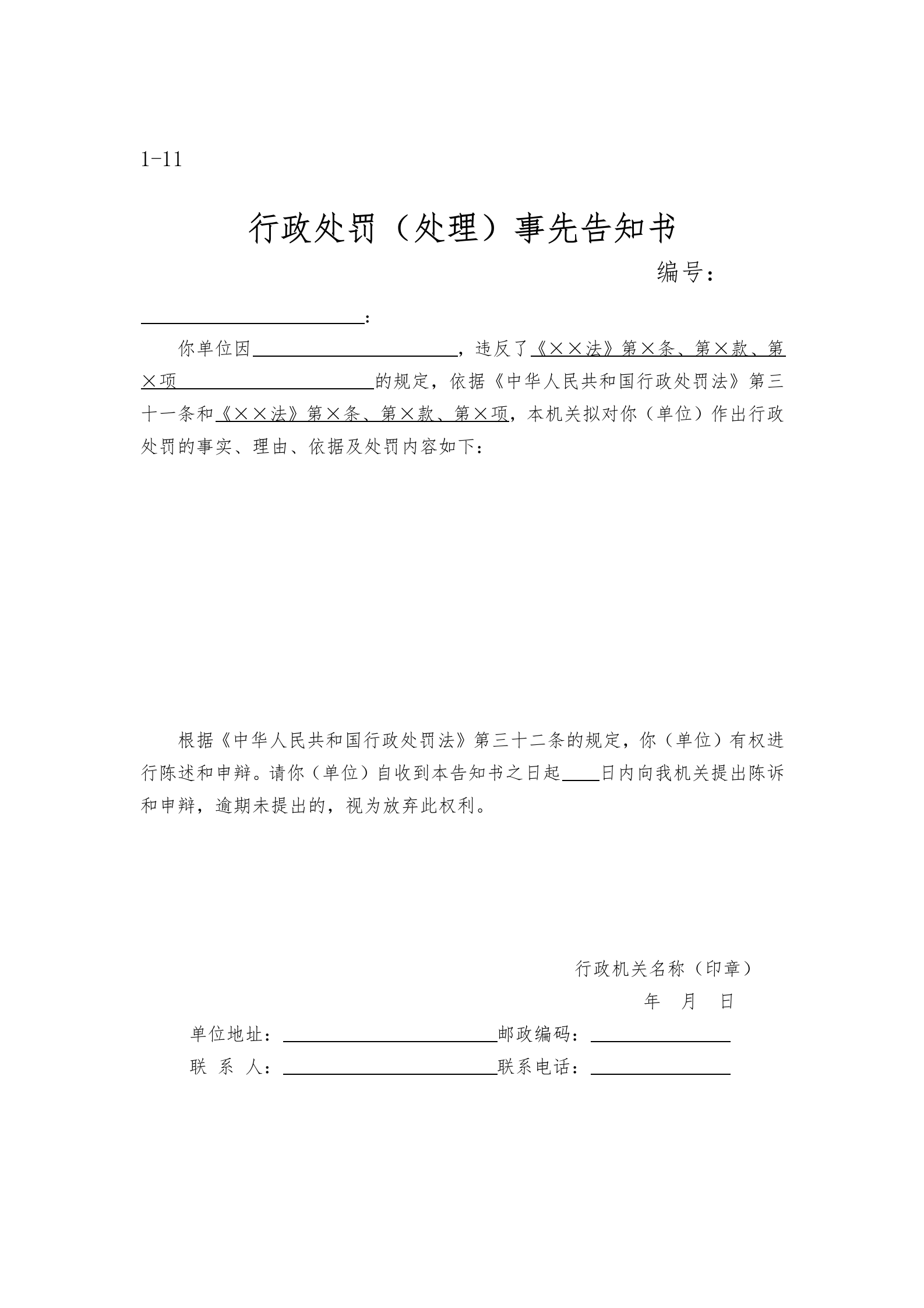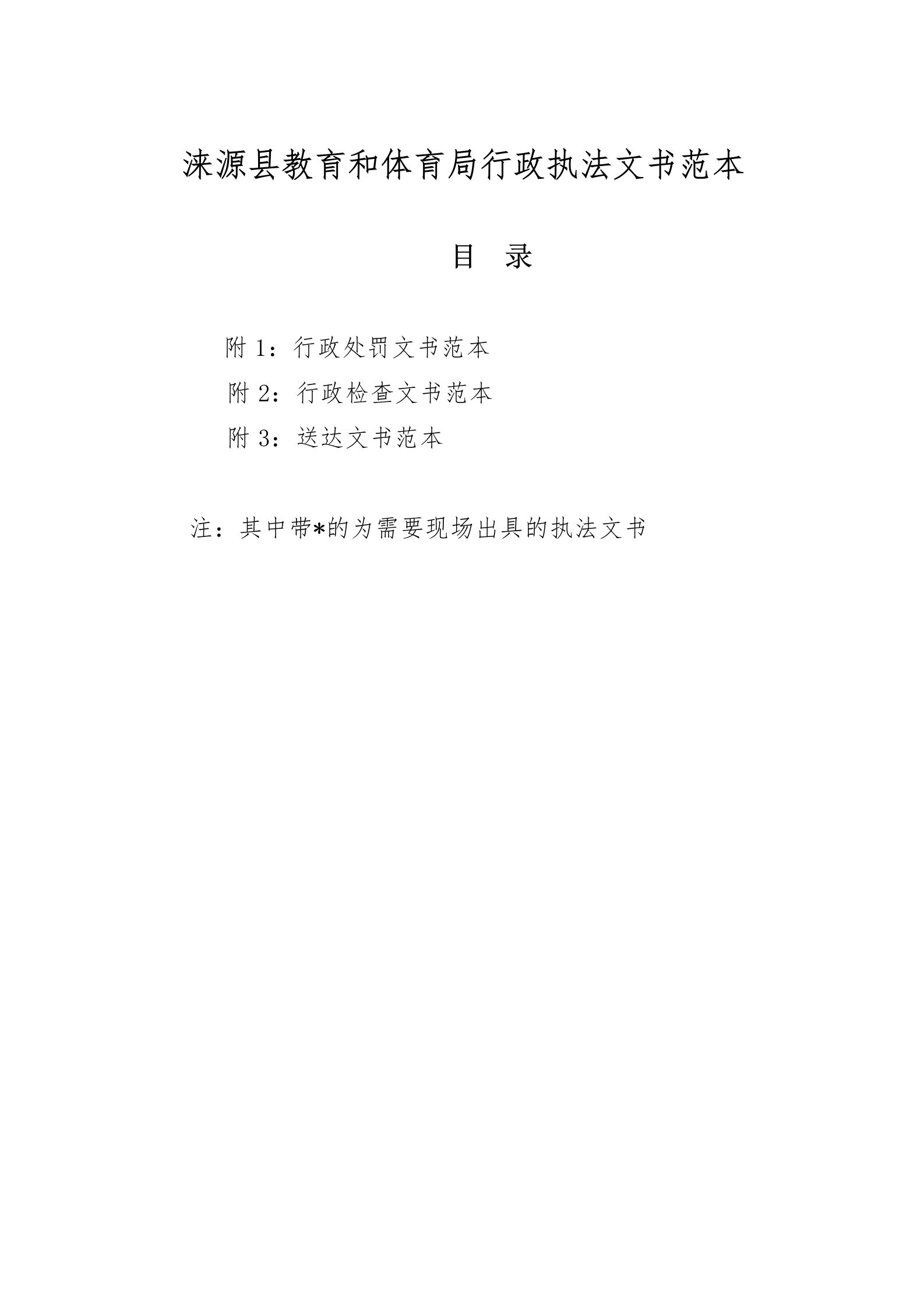涞源县教育和体育局执法文书样本.docx