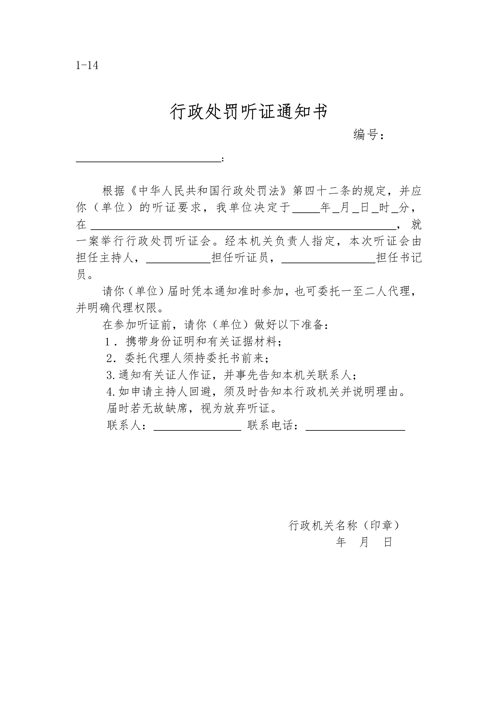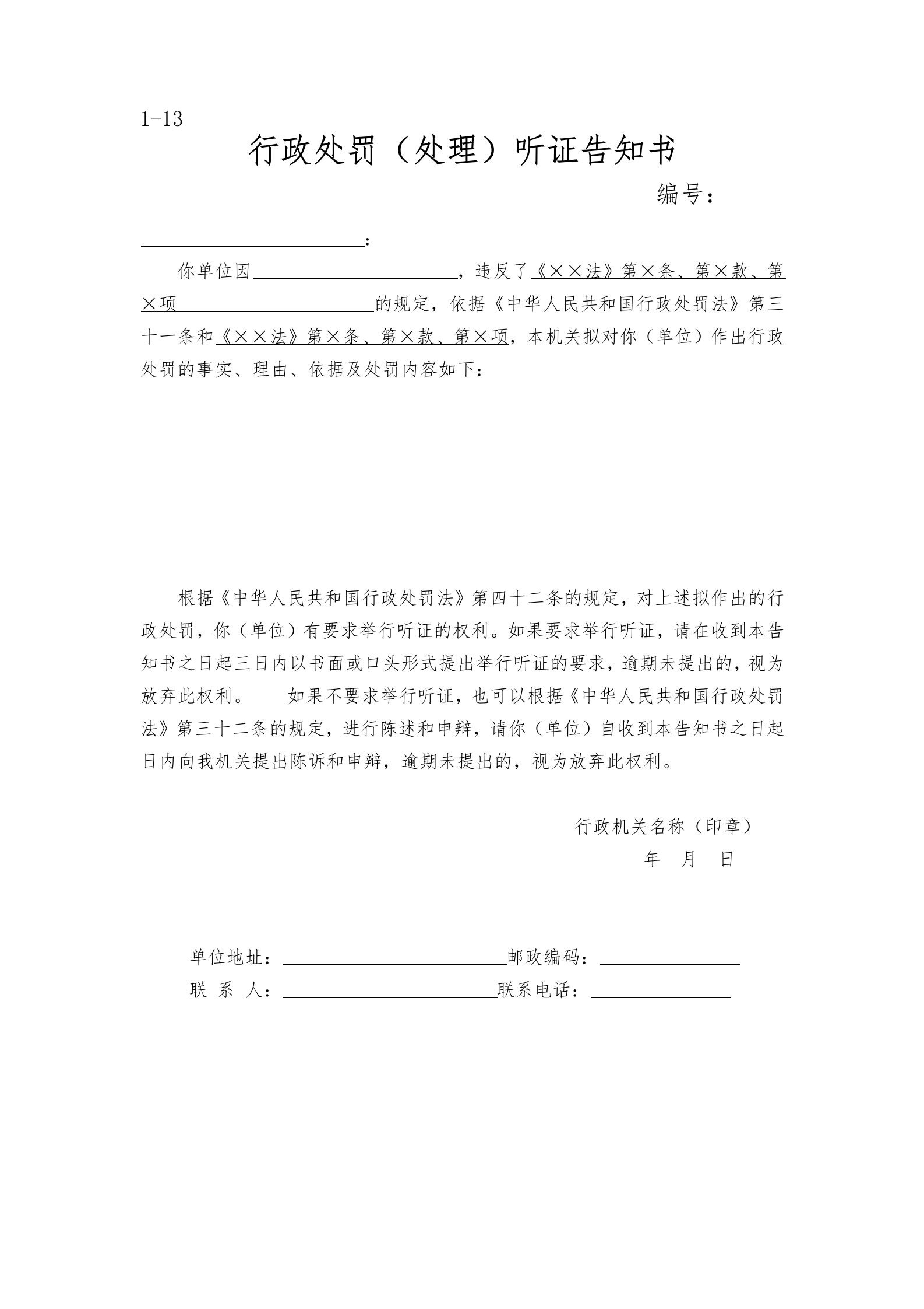 涞源县教育和体育局执法文书样本
