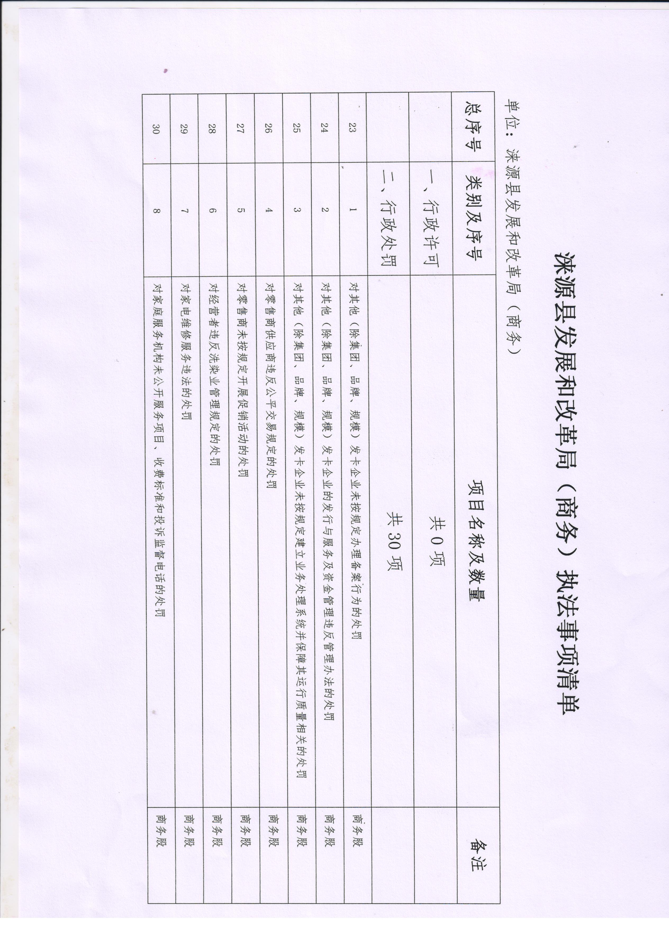 涞源县发展和改革局(商务)执法事项清单