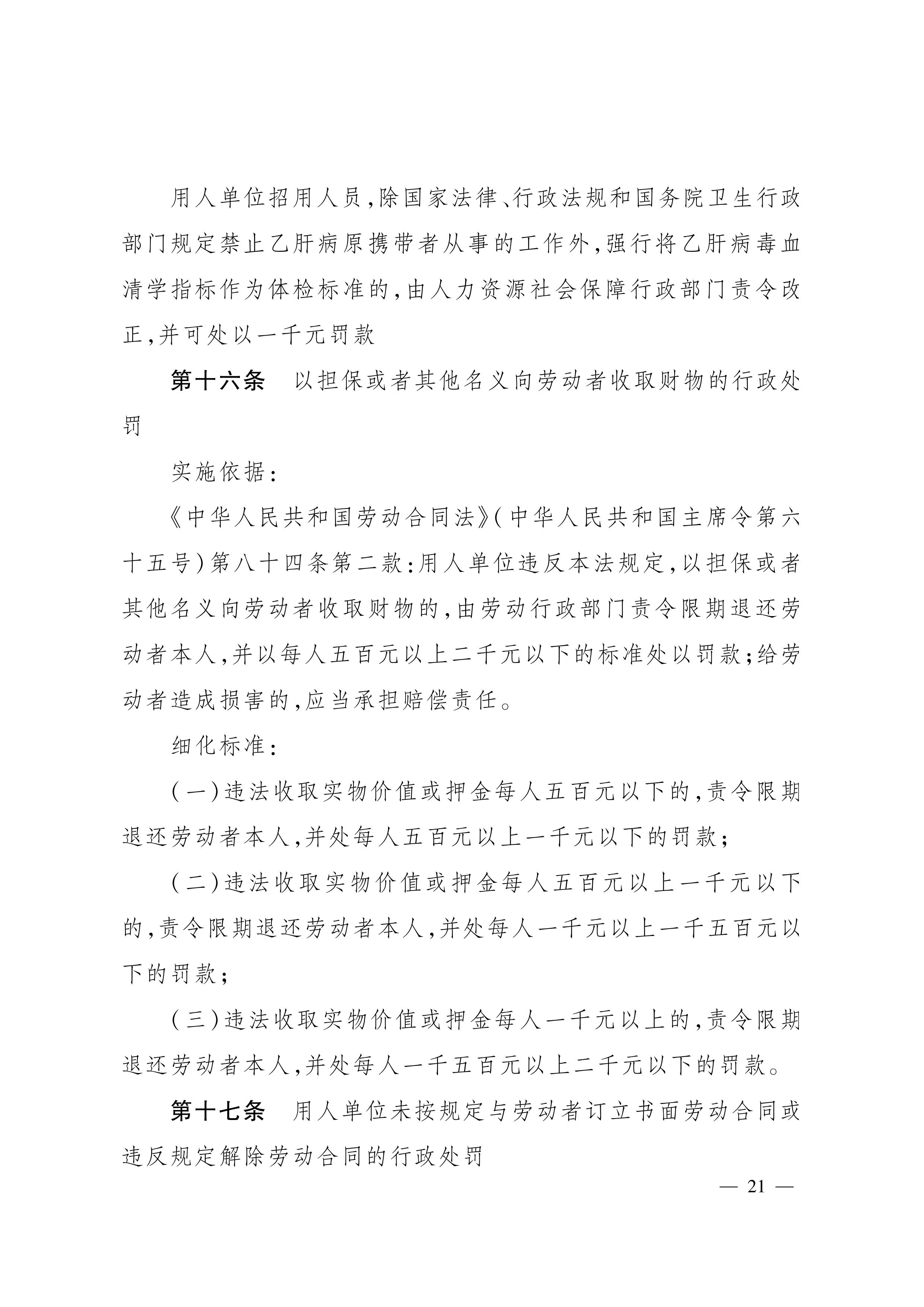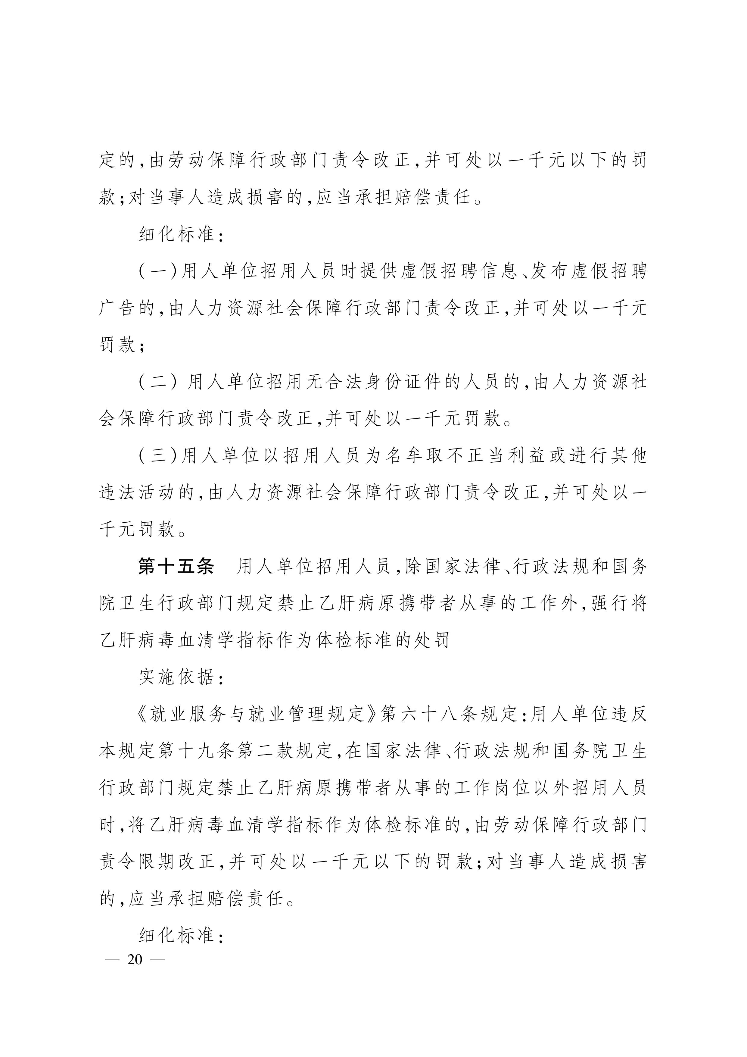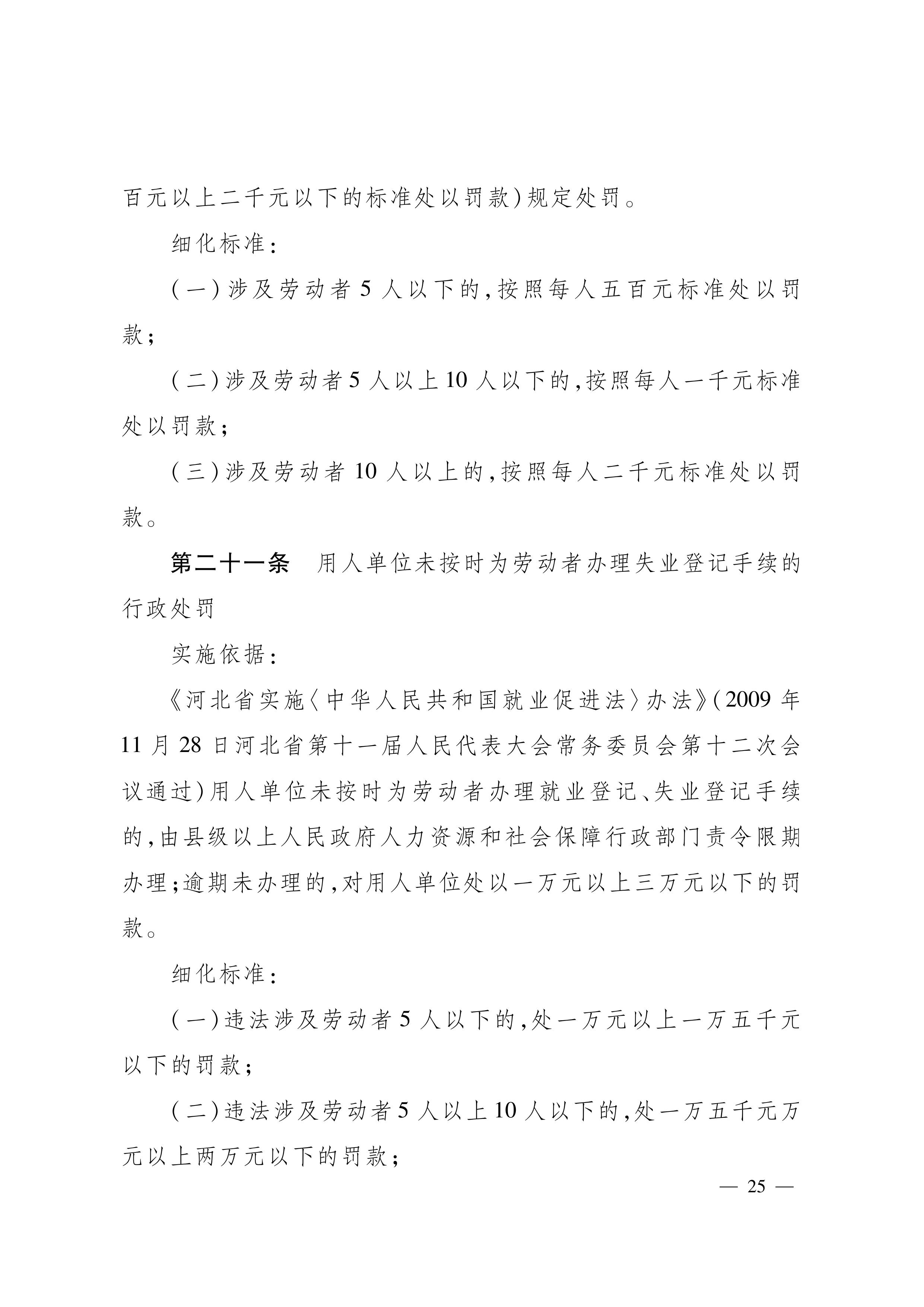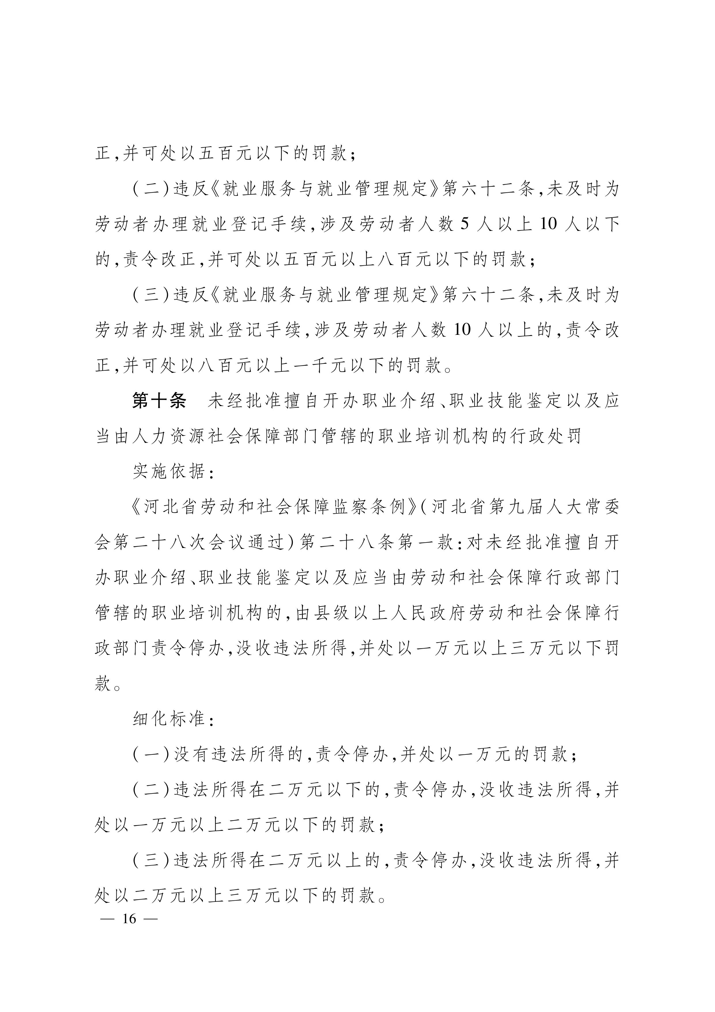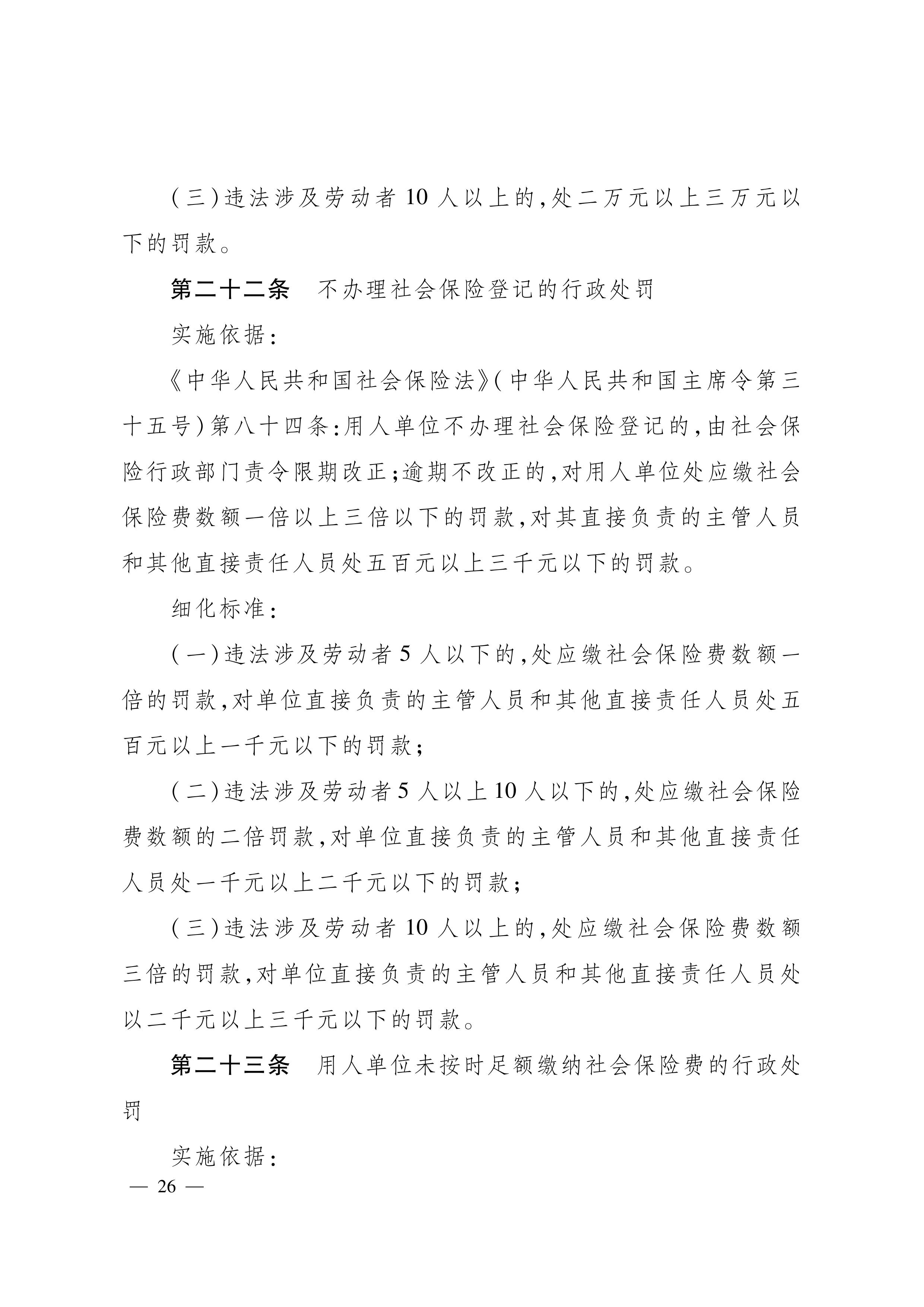 涞源县人力资源和社会保障局行政处罚自由裁量权适用规则