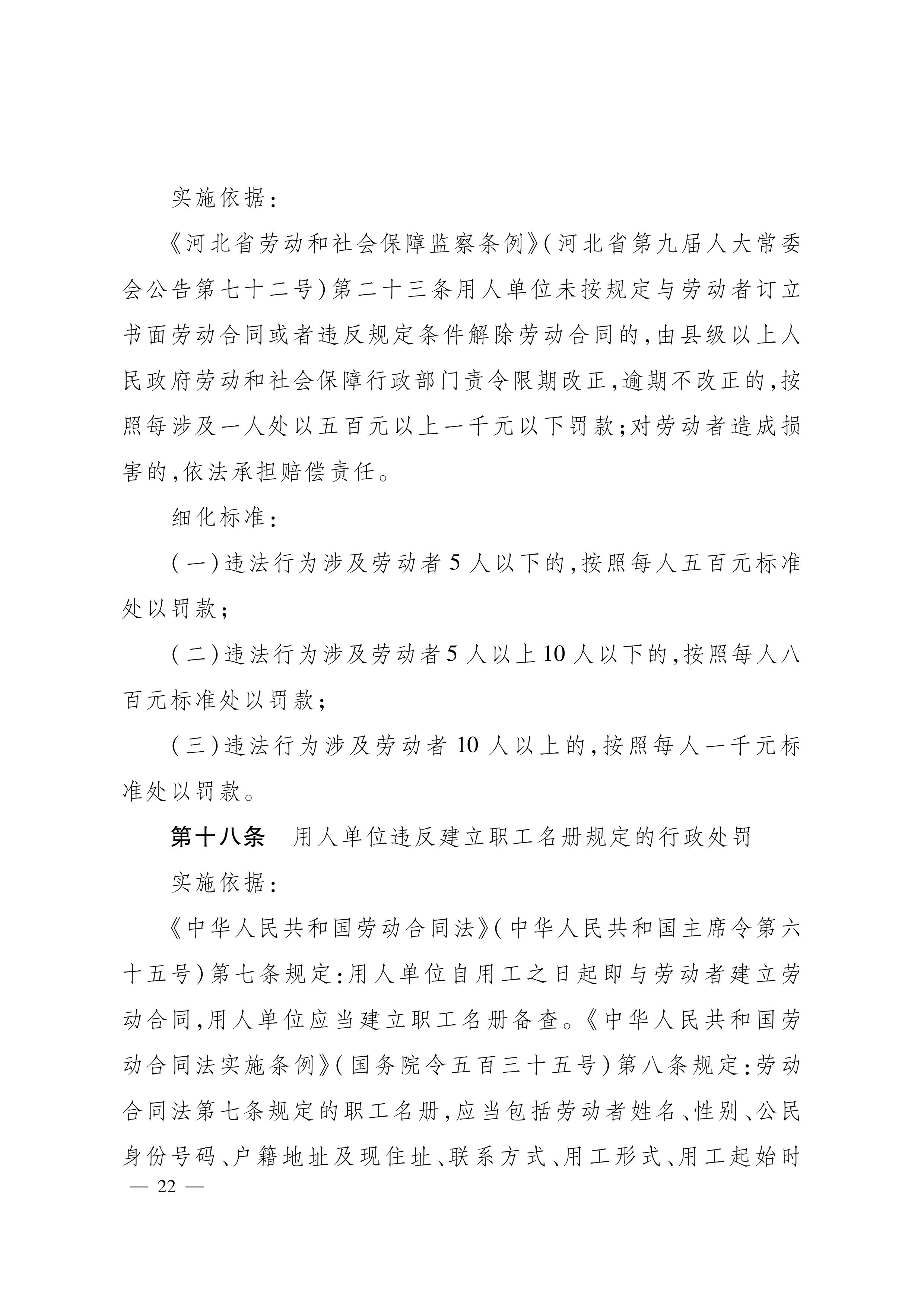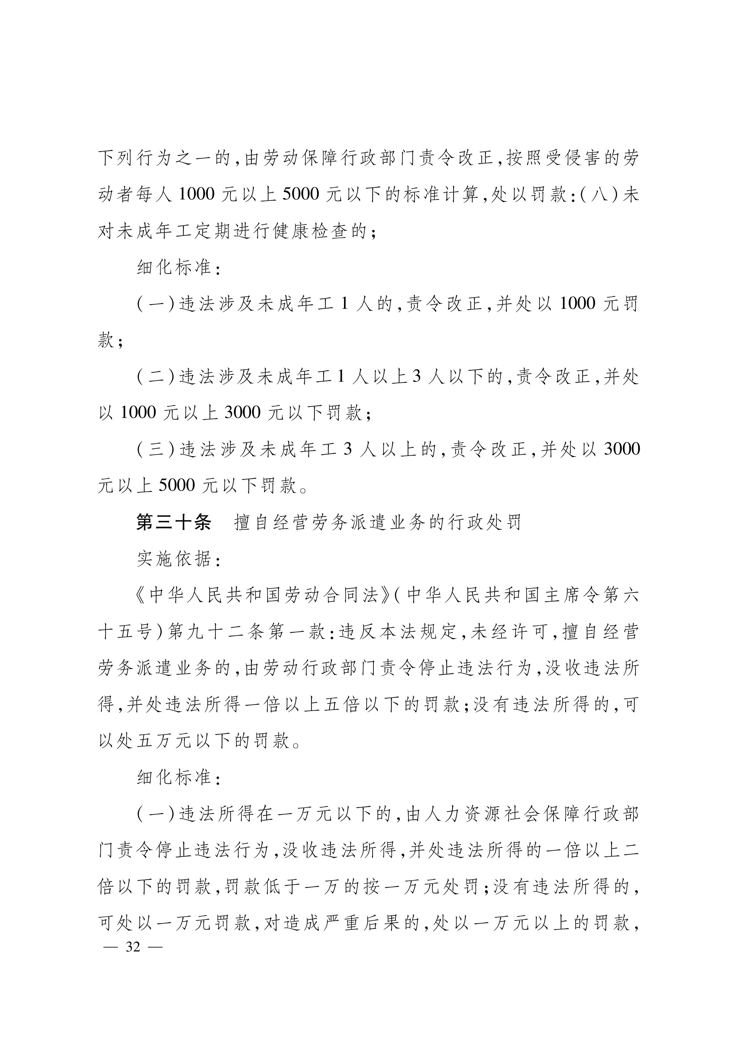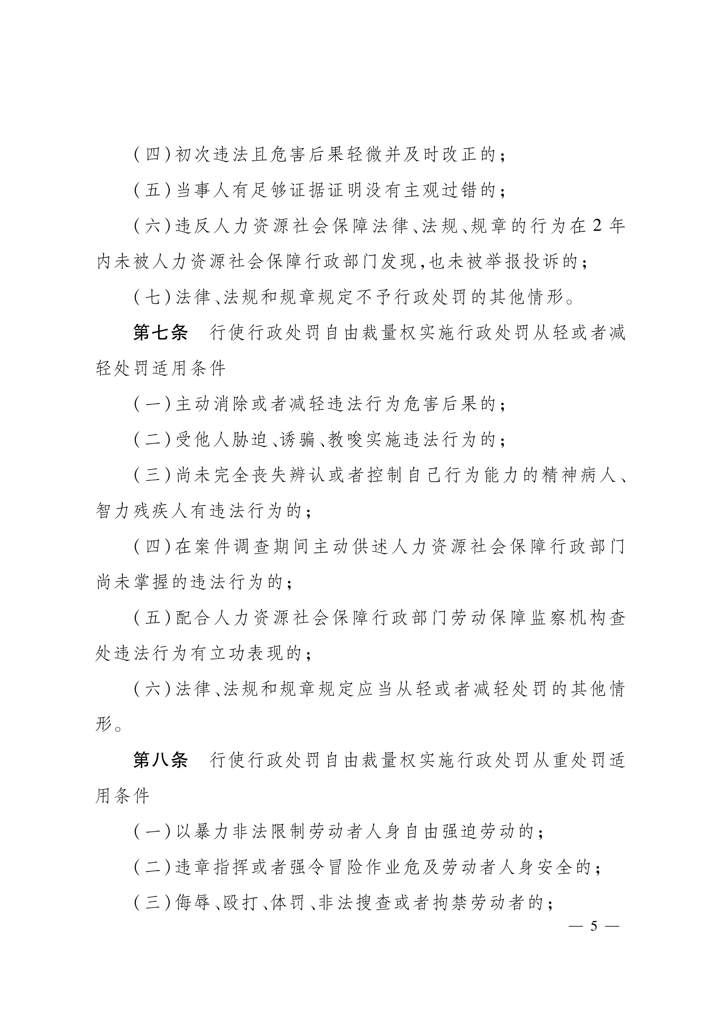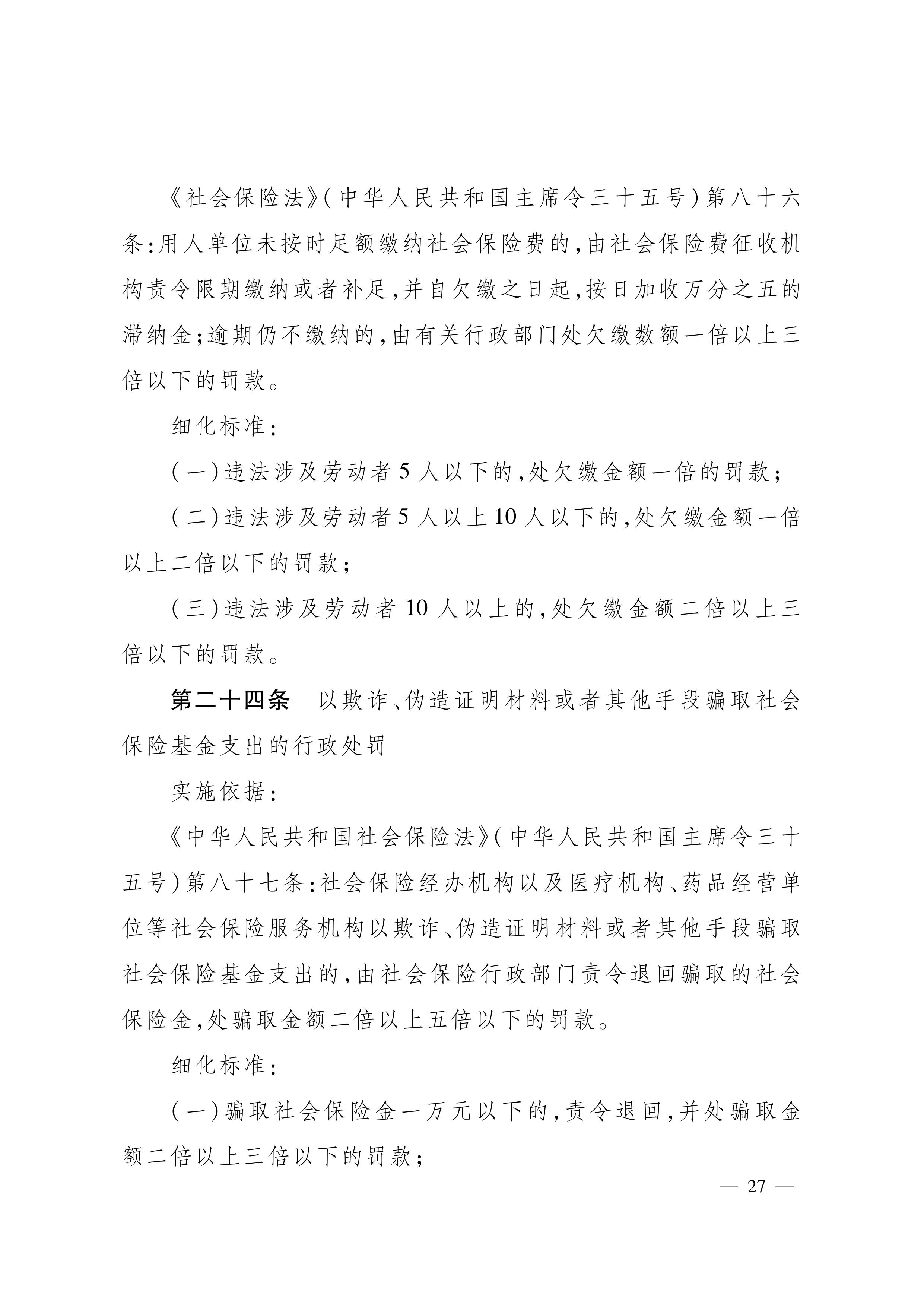 涞源县人力资源和社会保障局行政处罚自由裁量权适用规则