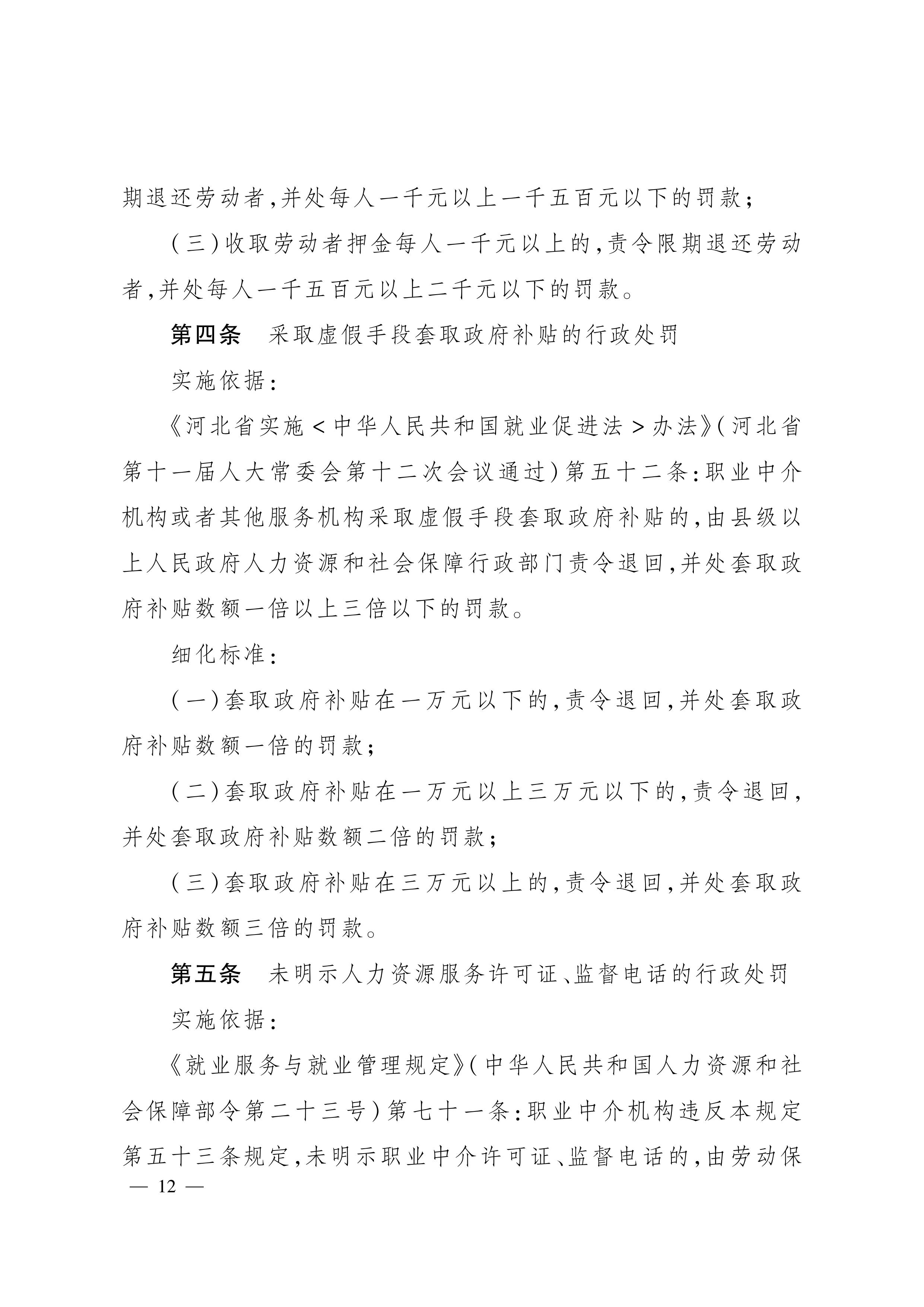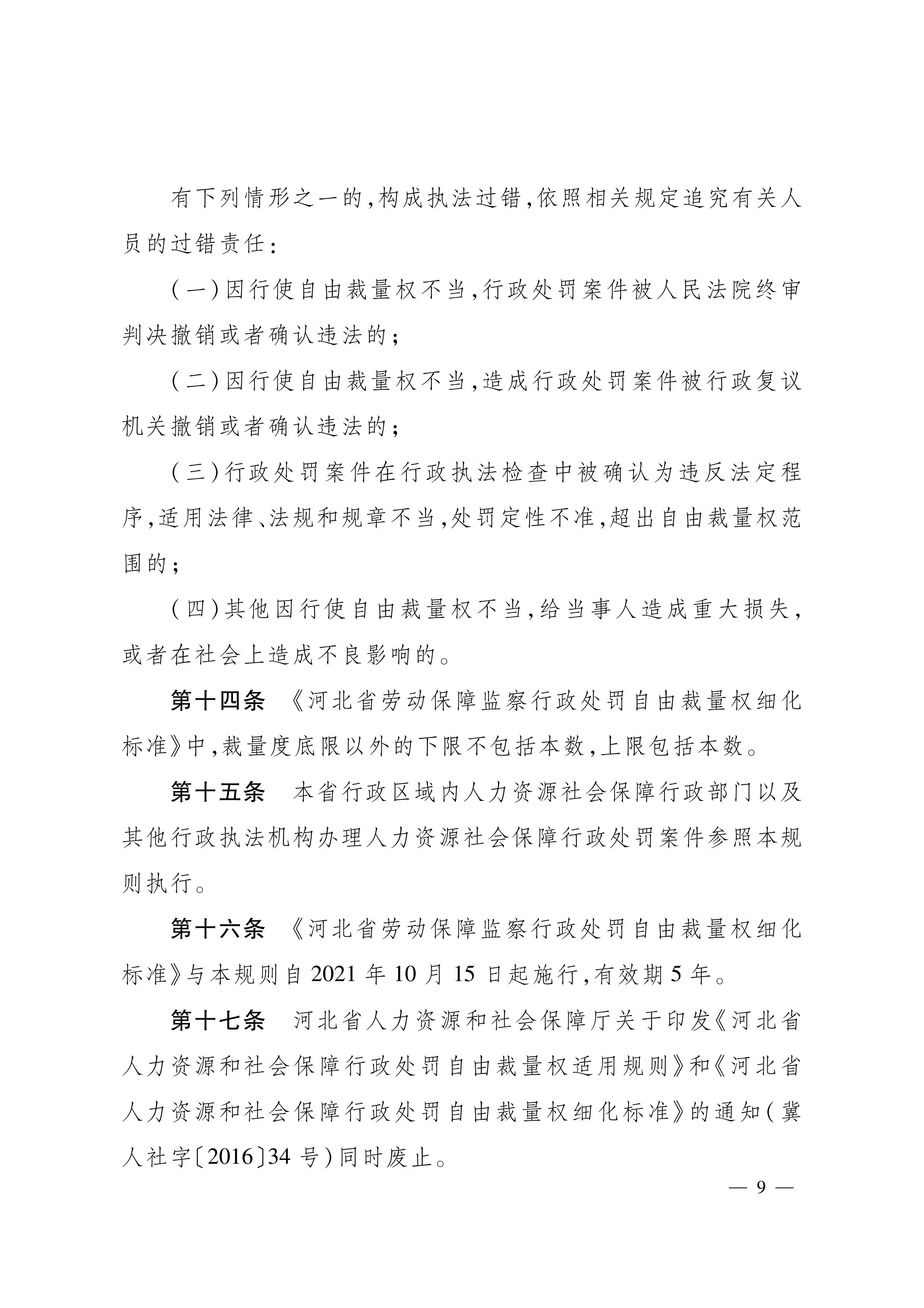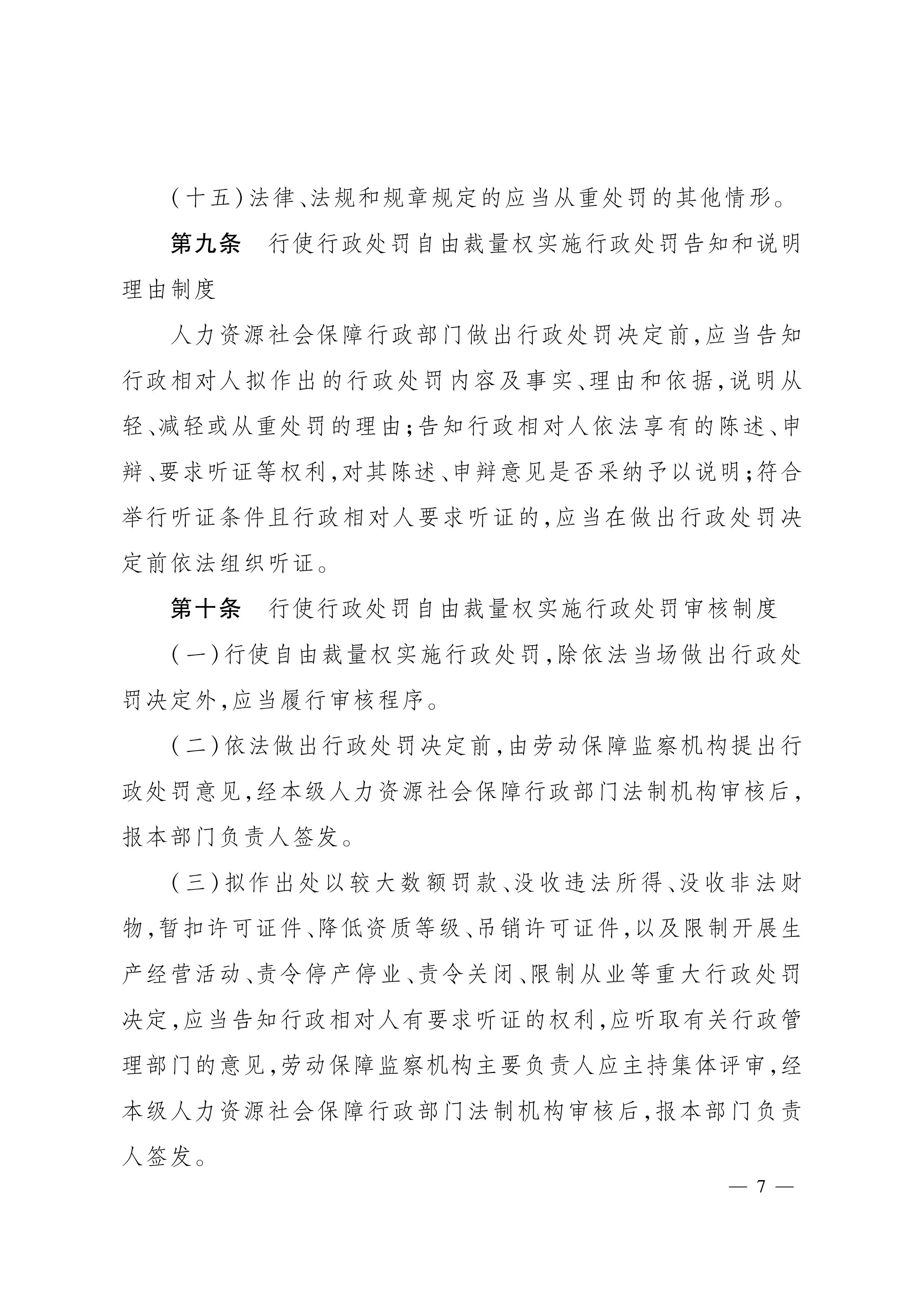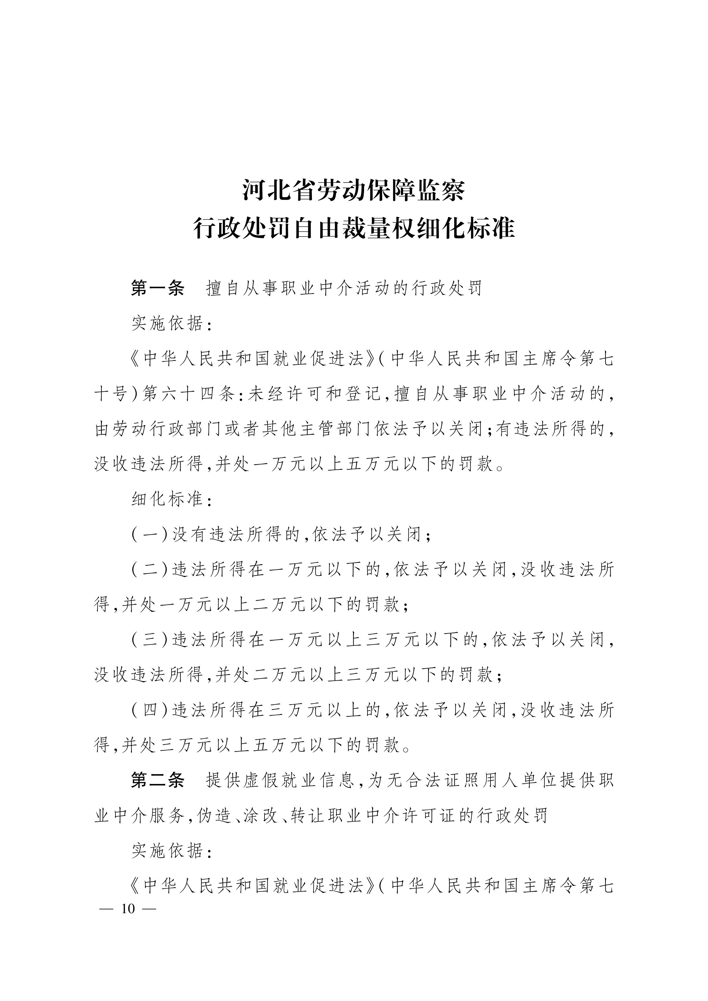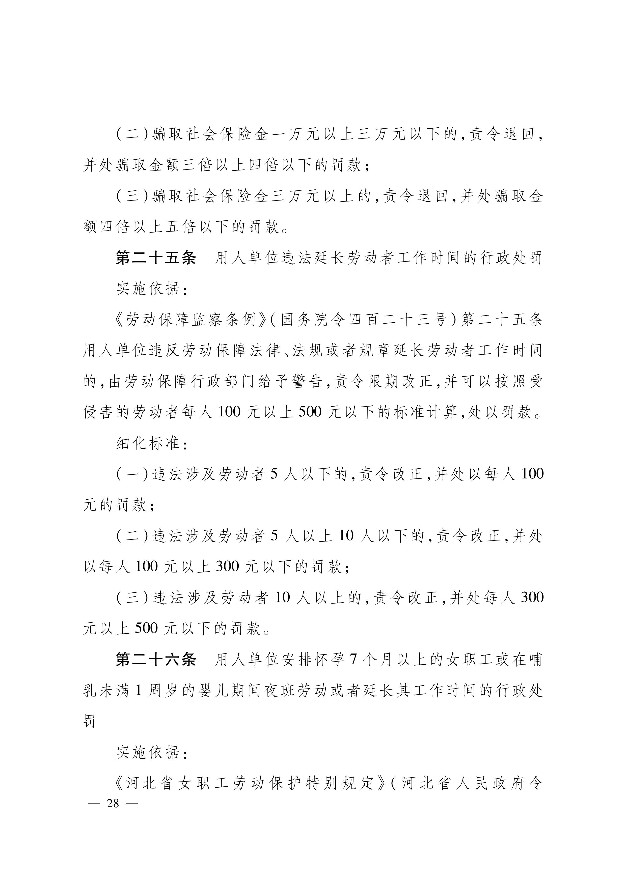 涞源县人力资源和社会保障局行政处罚自由裁量权适用规则