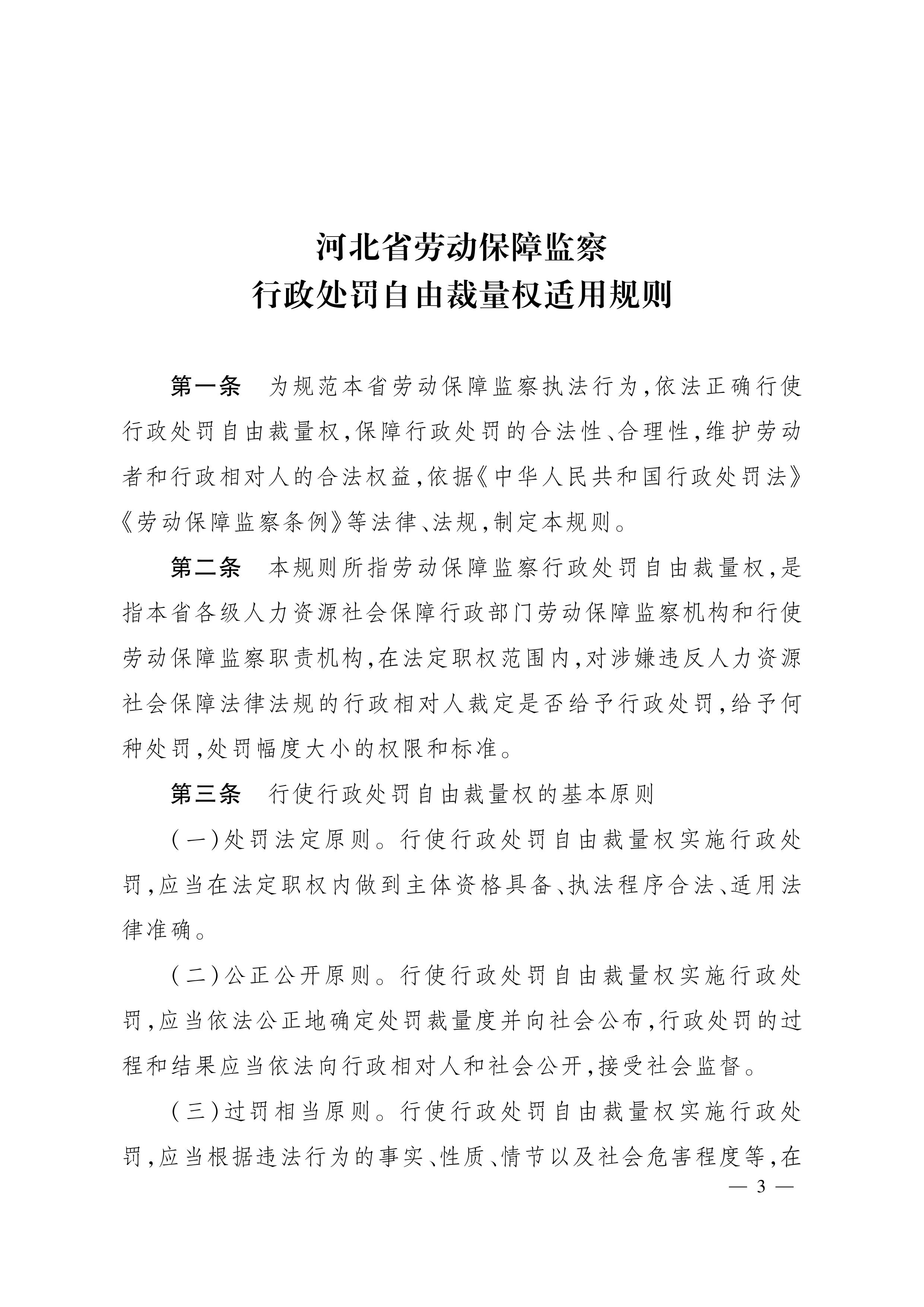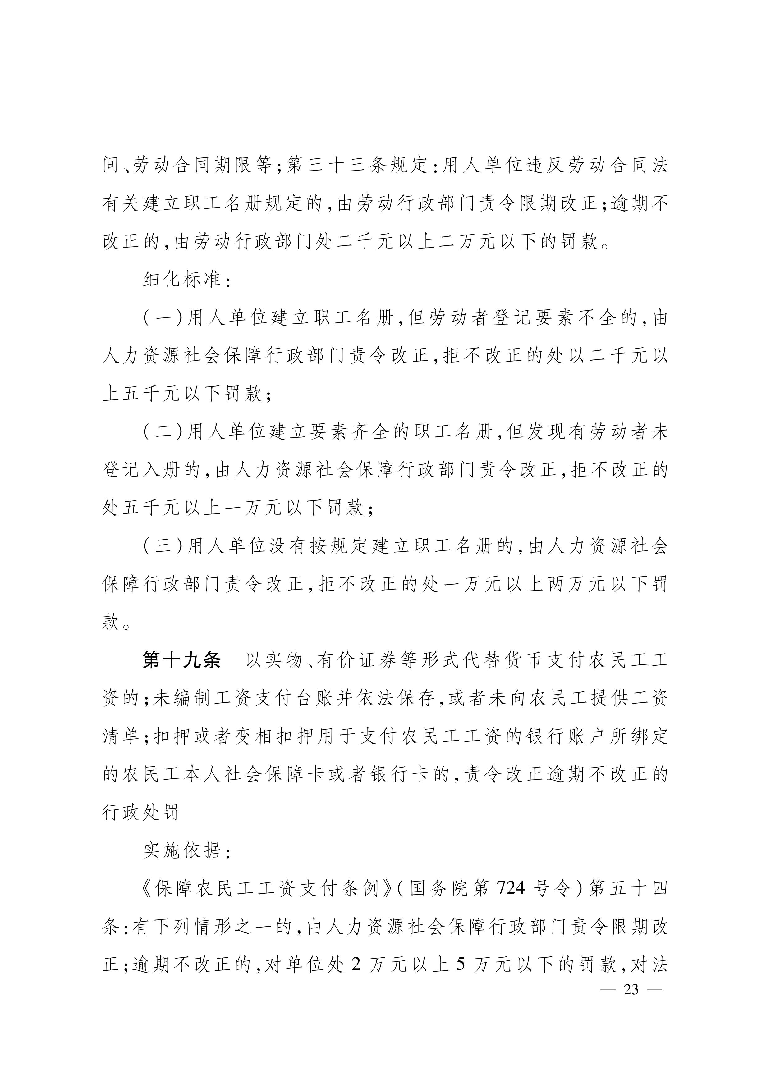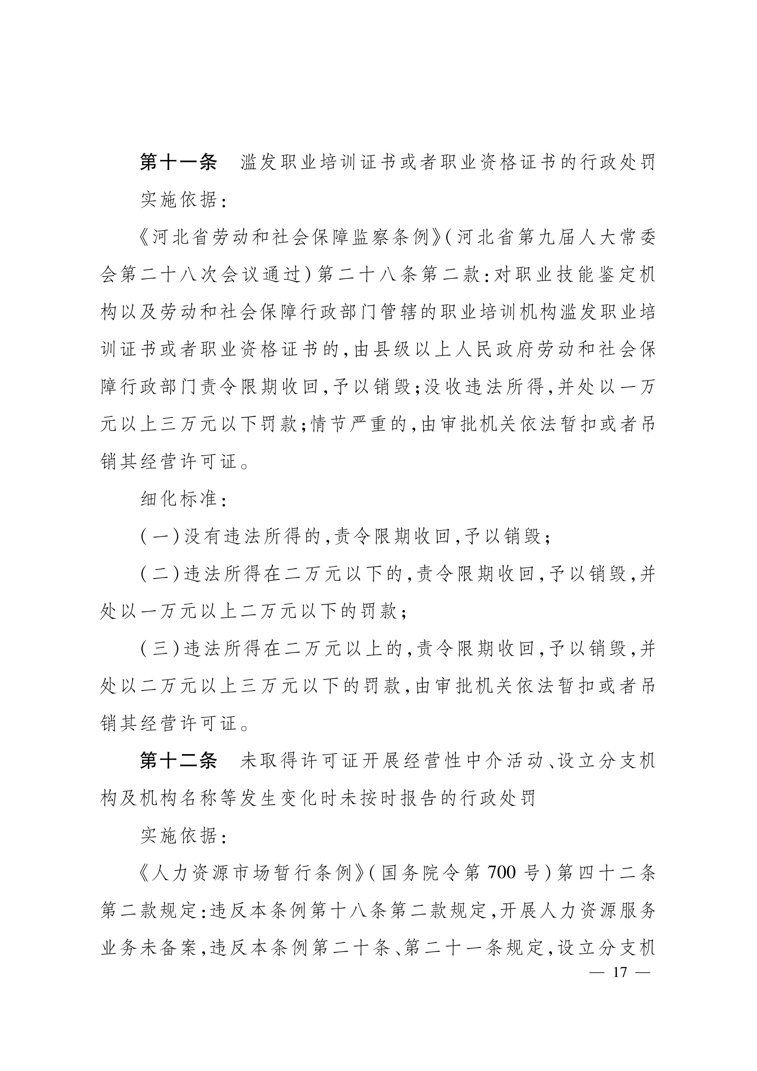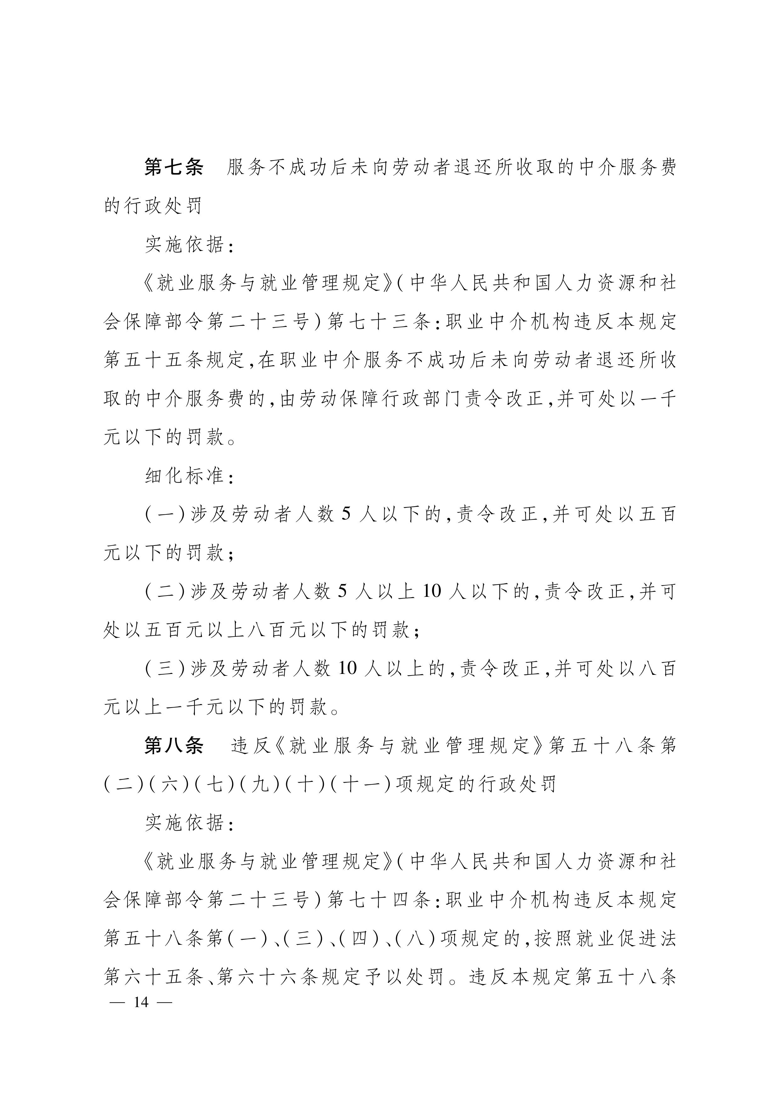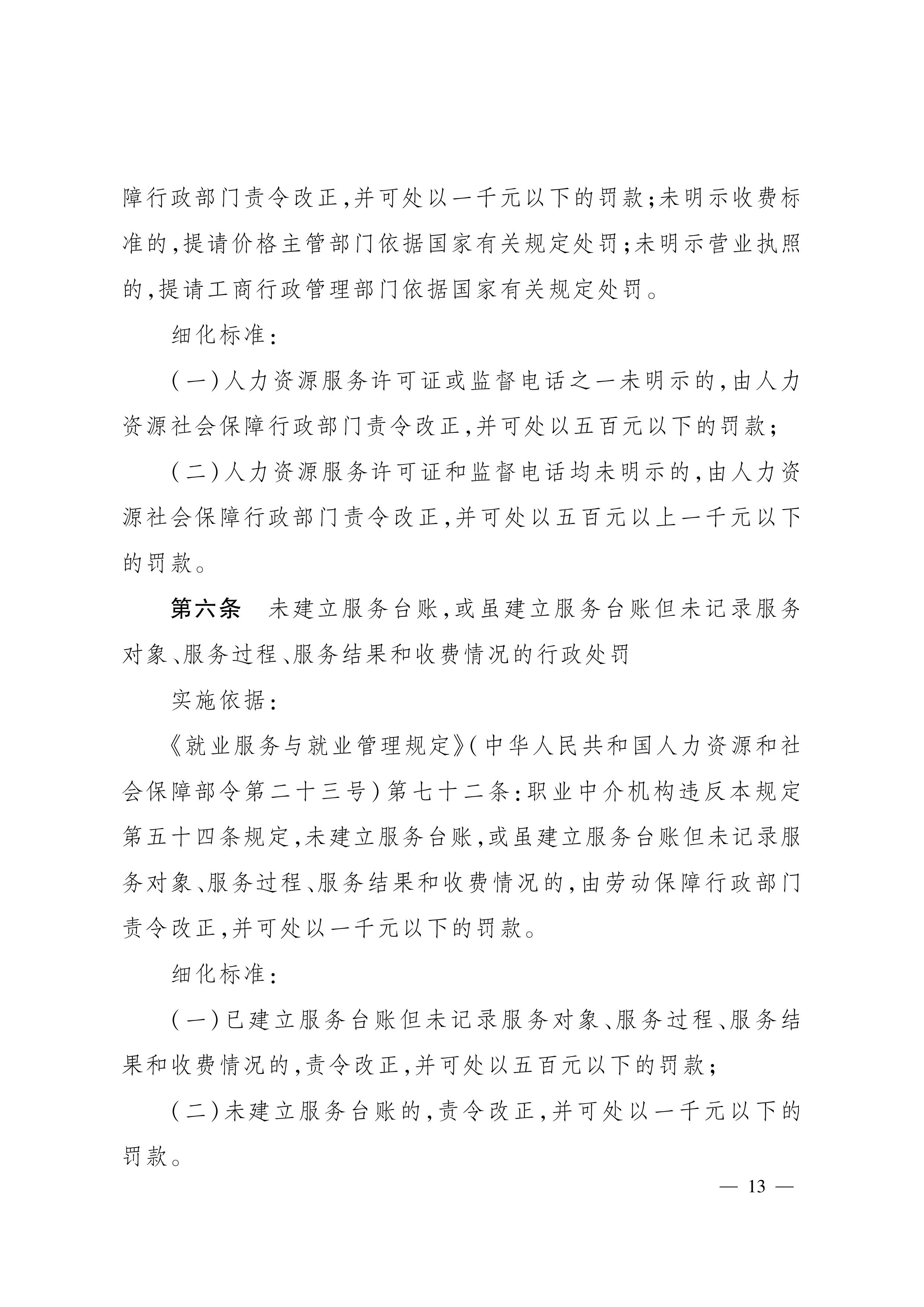 涞源县人力资源和社会保障局行政处罚自由裁量权适用规则