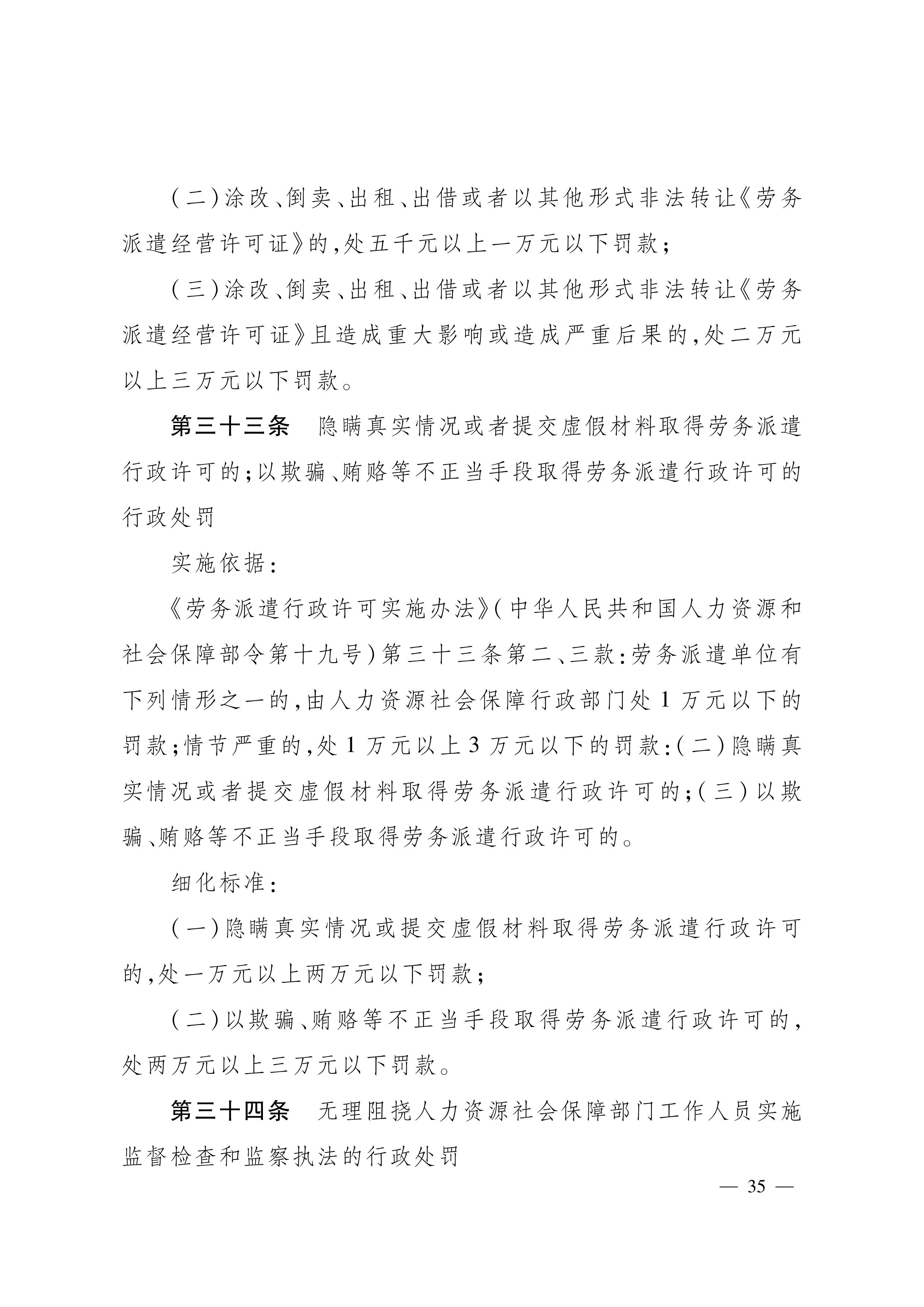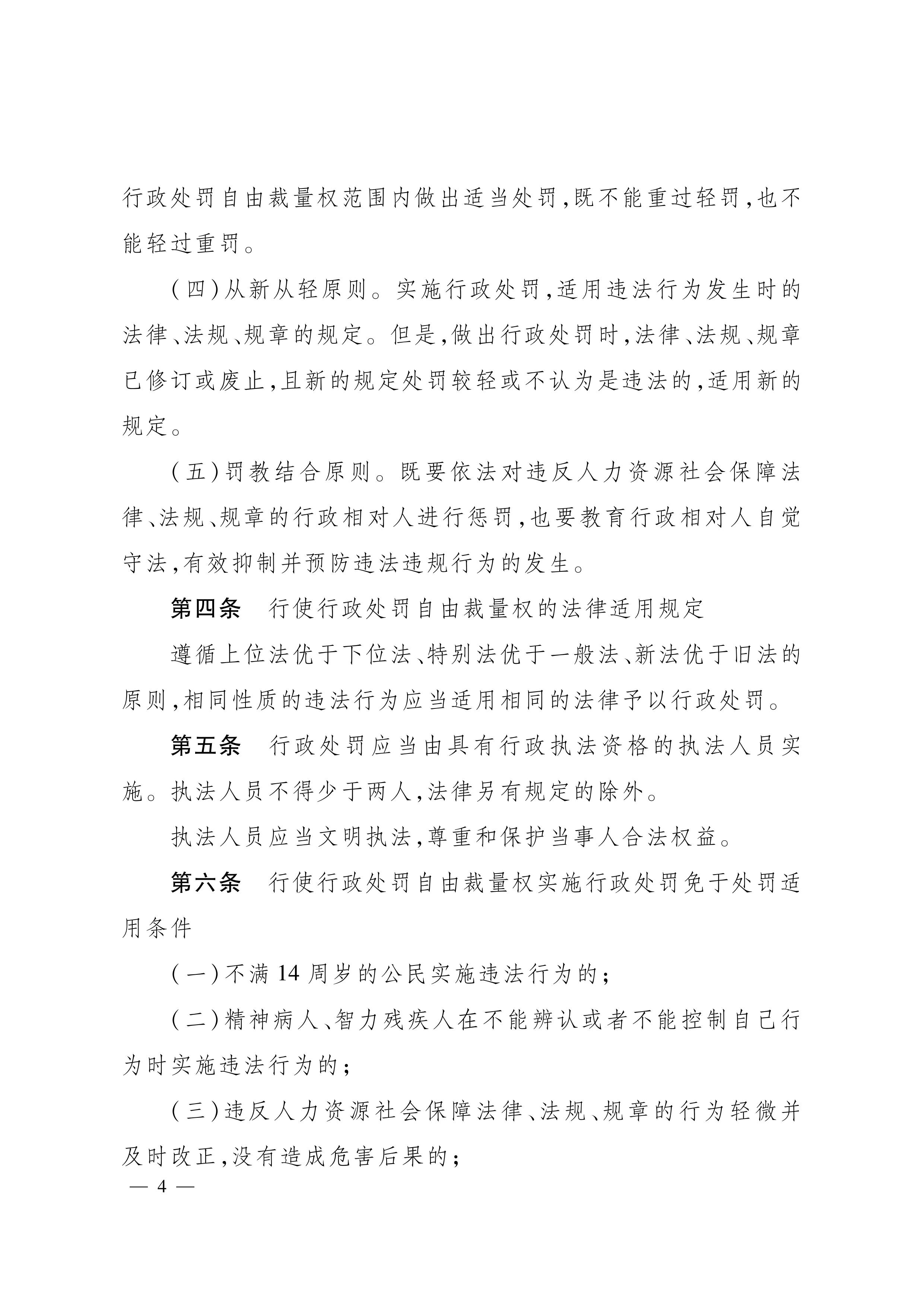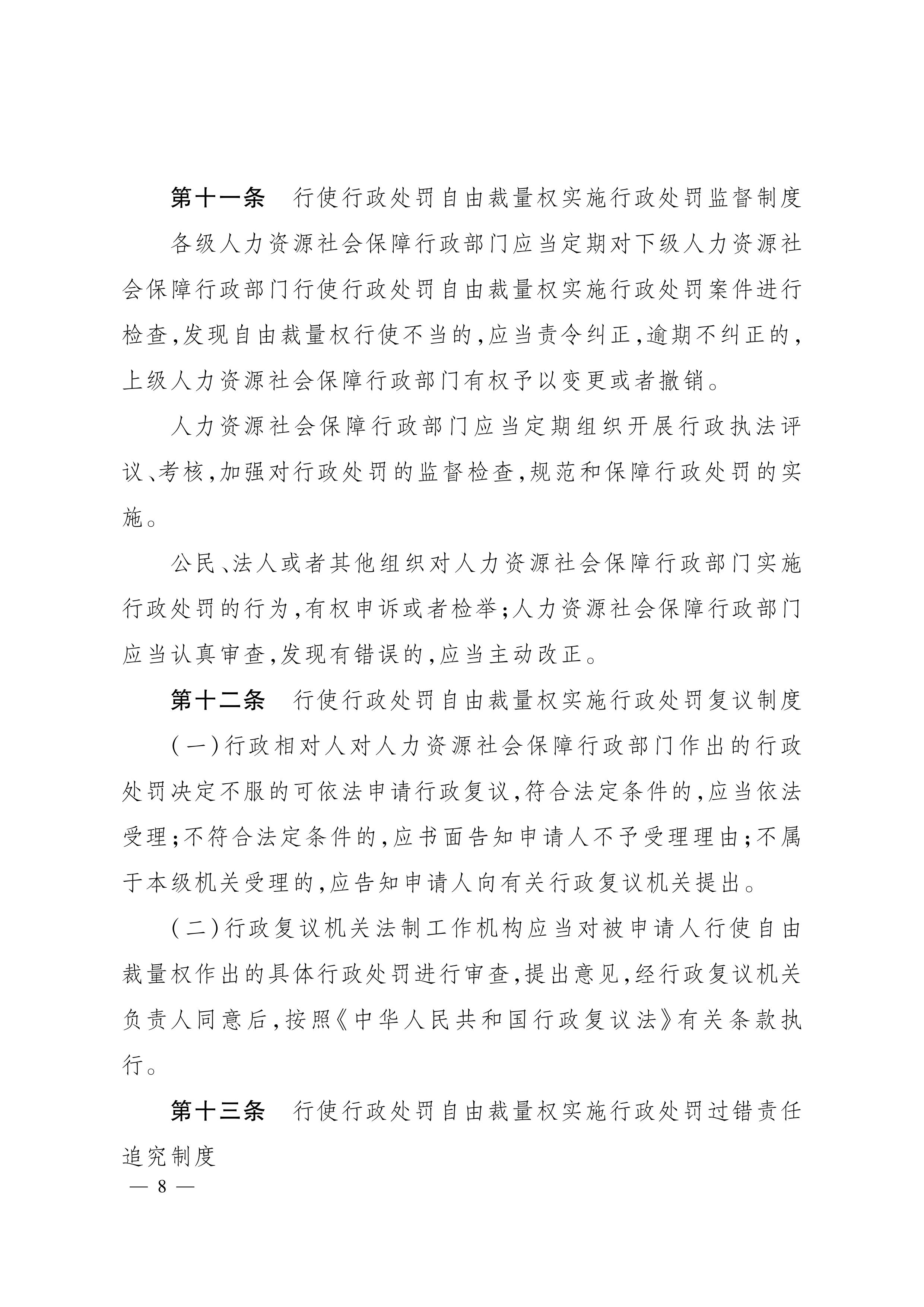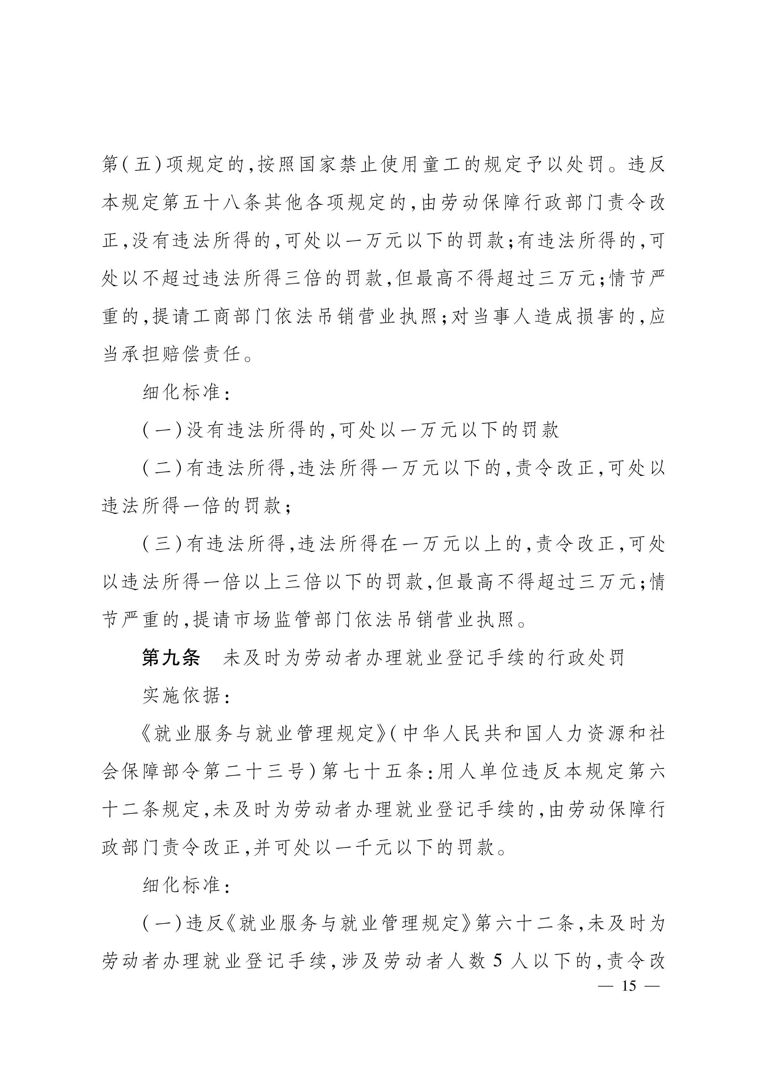 涞源县人力资源和社会保障局行政处罚自由裁量权适用规则
